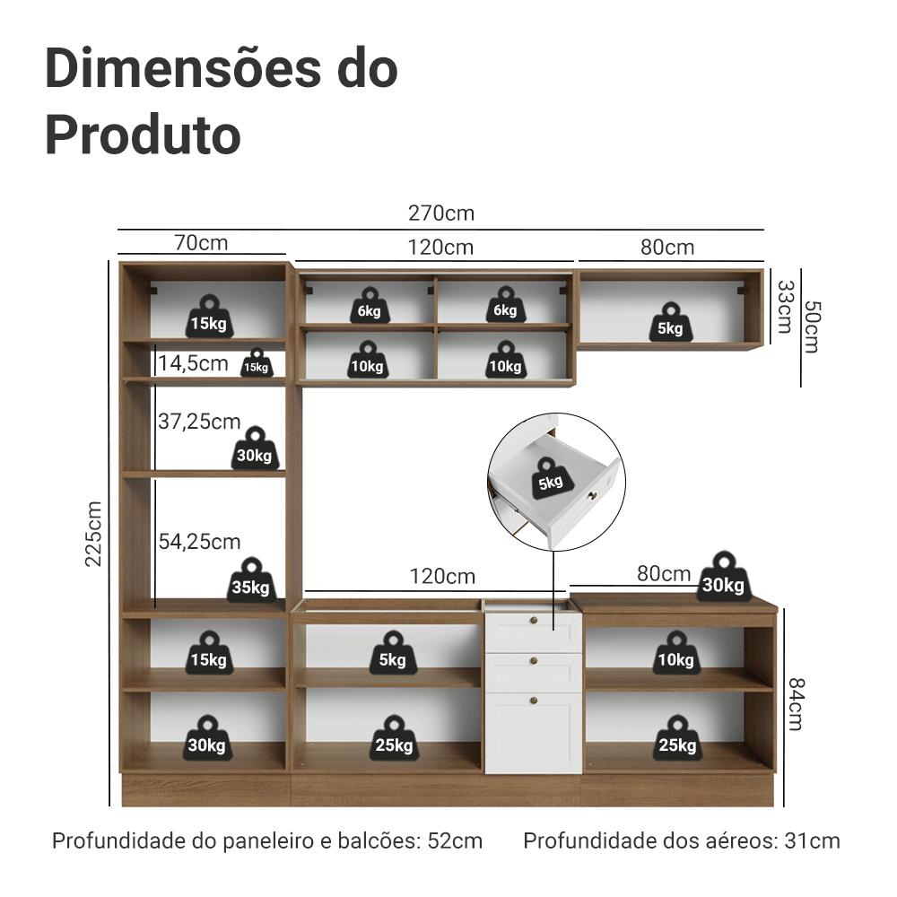 Armário de Cozinha Completa 270 cm Rustic/Branco Vik Madesa 02