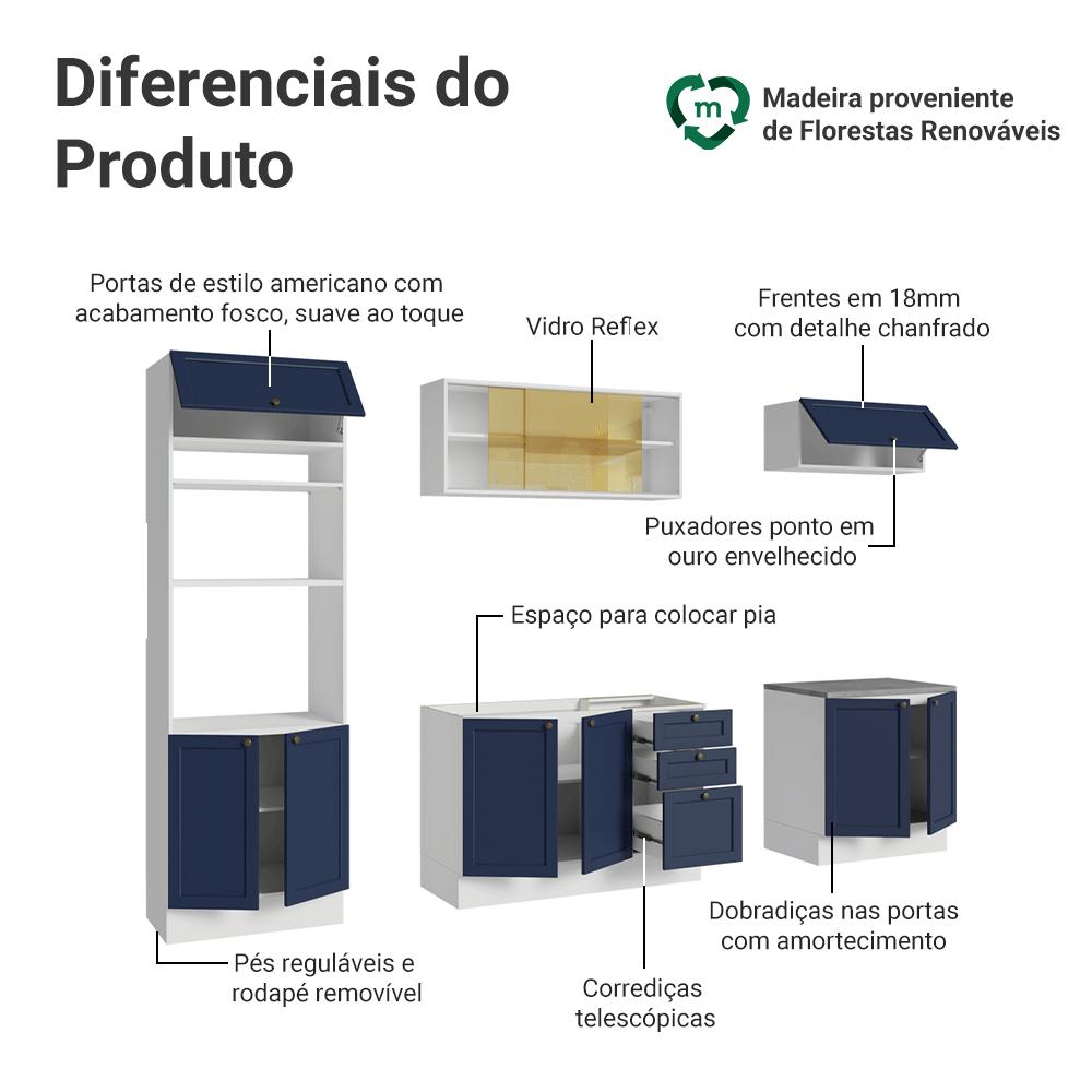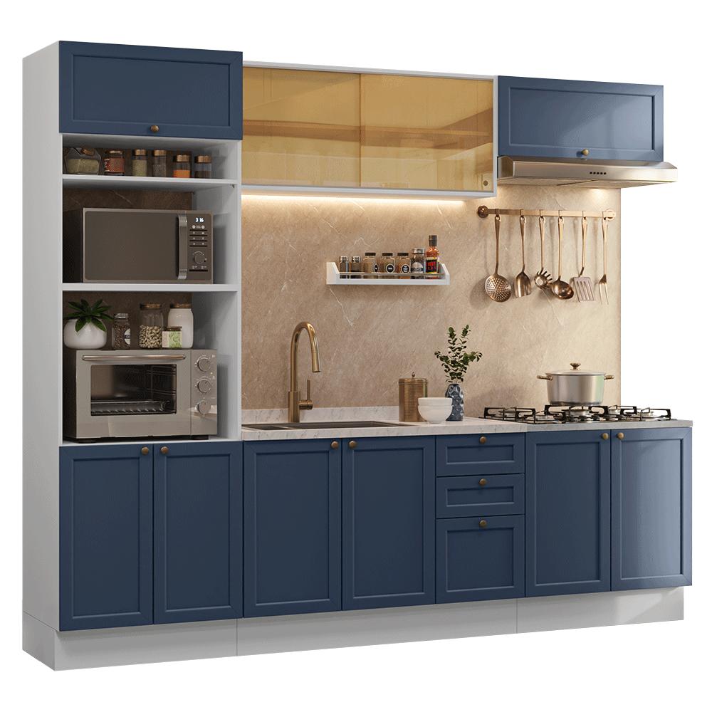 Armário de Cozinha Completa 270 cm Branco/Azul Vik Madesa 02