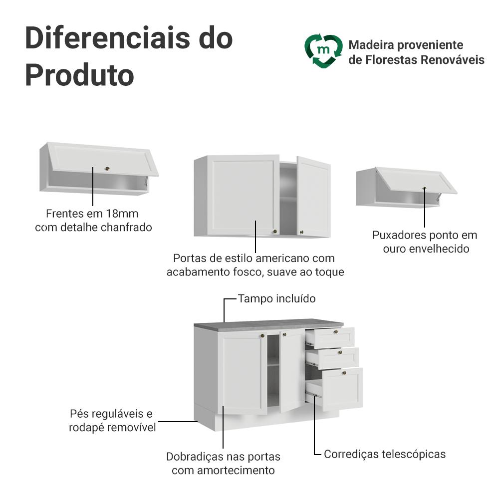 Armário de Cozinha Completa 280 cm Branco Vik Madesa 01