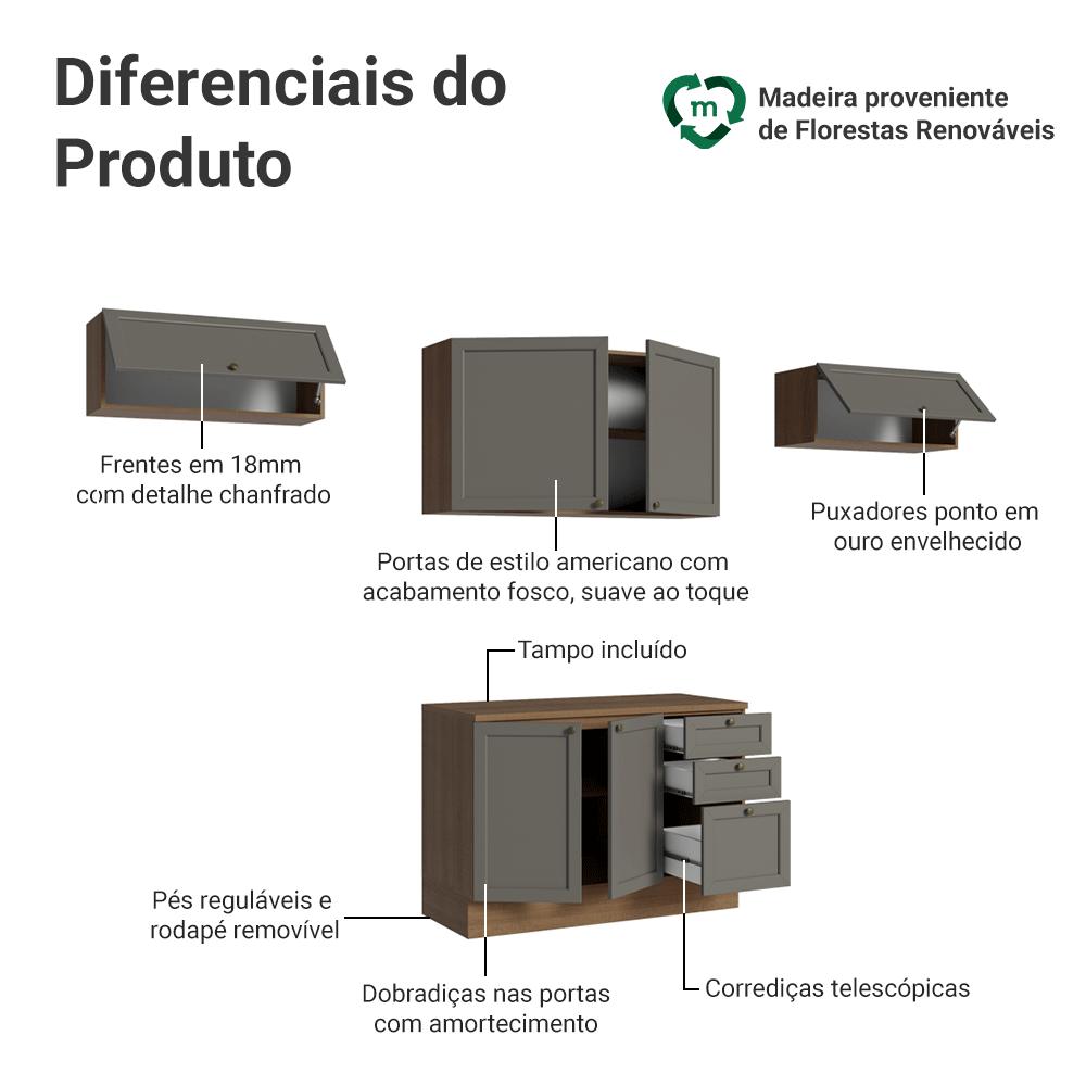 Armário de Cozinha Completa 280 cm Rustic/Cinza Vik Madesa 01
