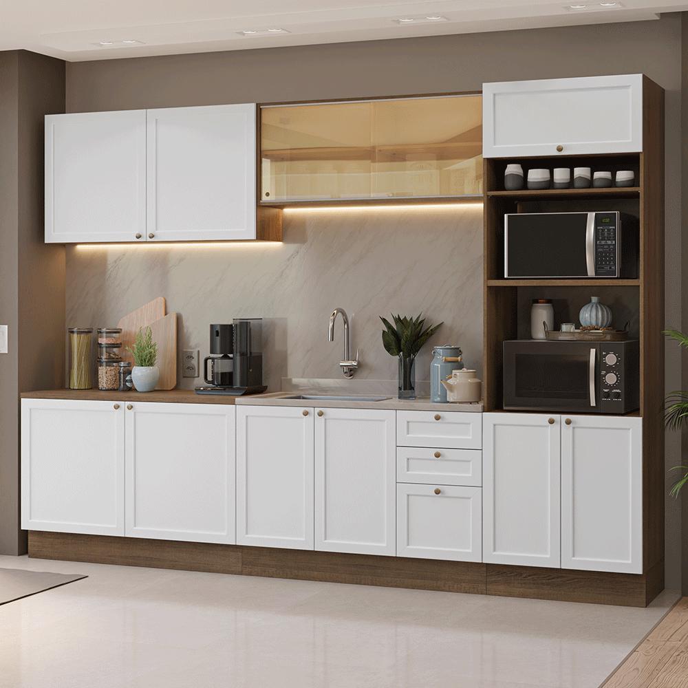 Armário de Cozinha Completa 310 cm Rustic/Branco Vik Madesa 01