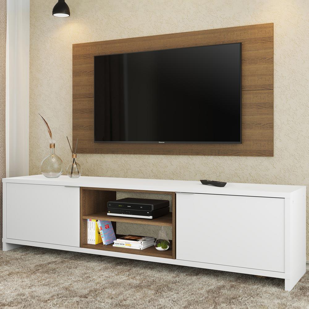 Rack Madesa Metz e Painel para TV até 55 Polegadas - Branco/Rustic/Rustic