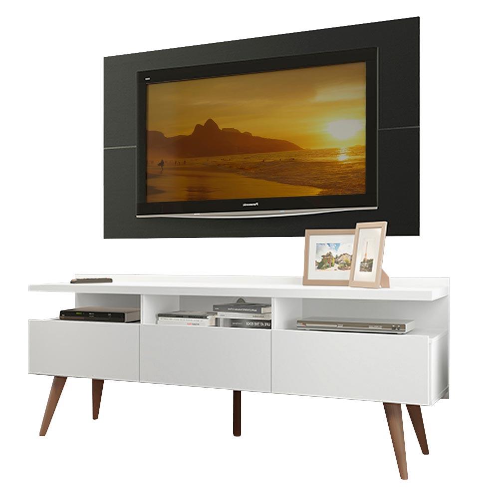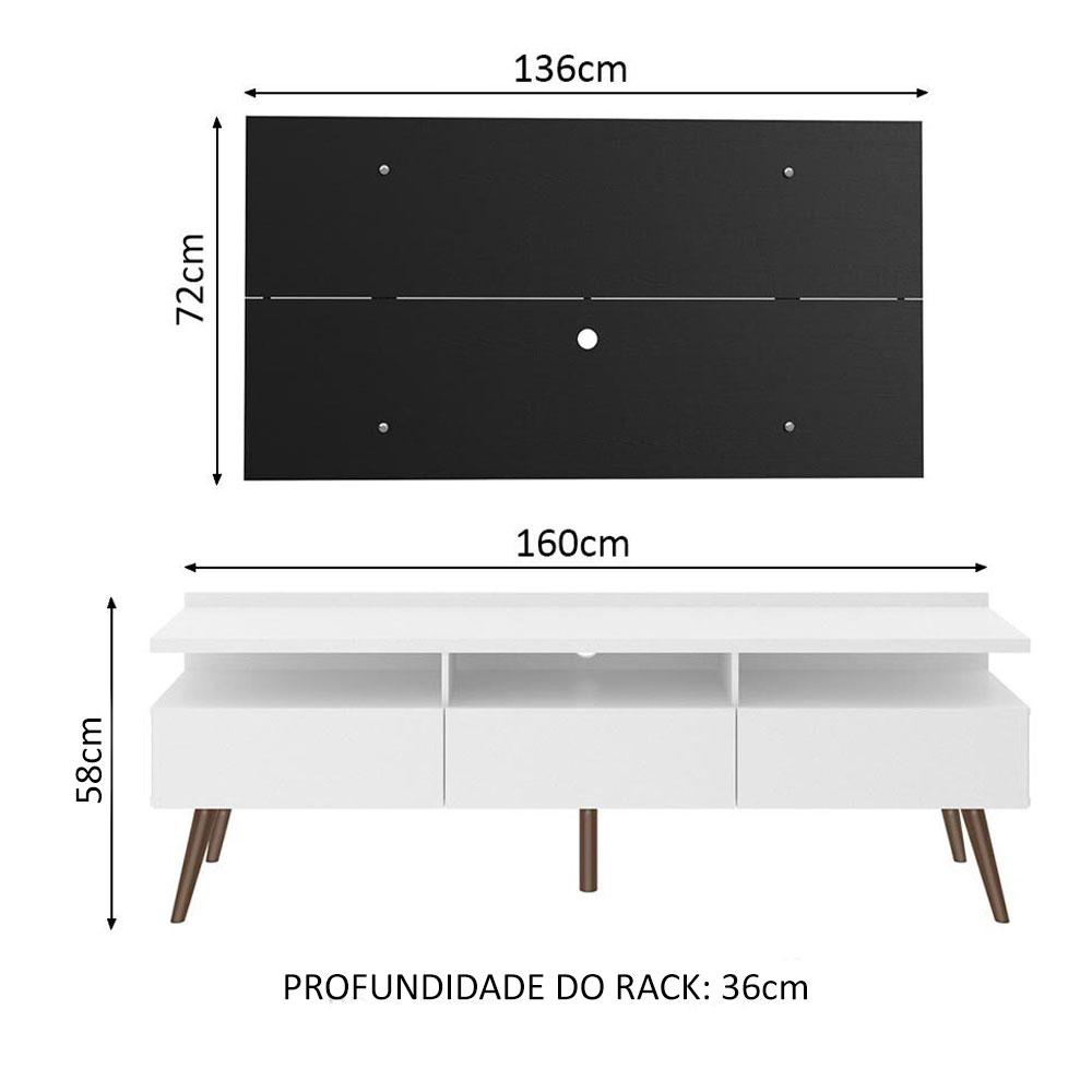 Rack Madesa Londres e Painel para TV até 55 Polegadas - Branco/Preto