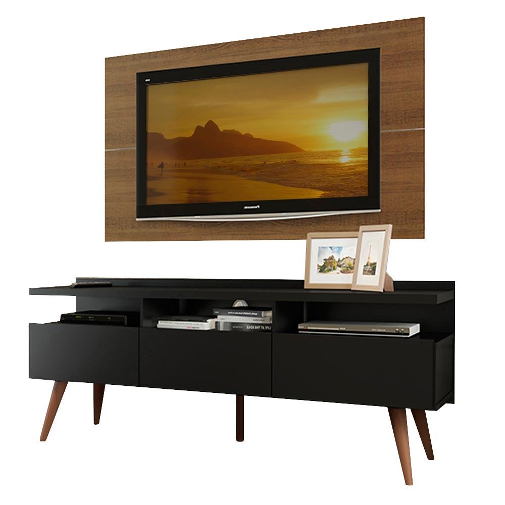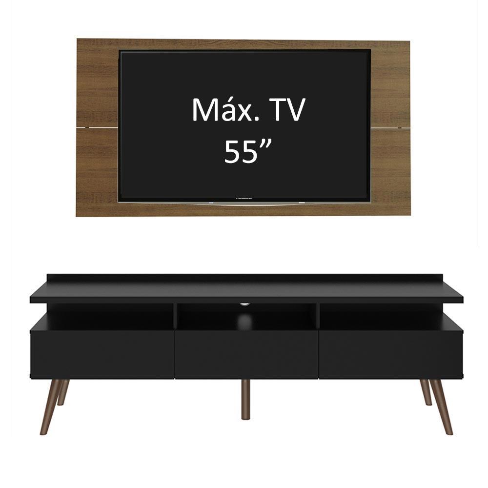 Rack Madesa Londres e Painel para TV até 55 Polegadas - Rustic/Preto