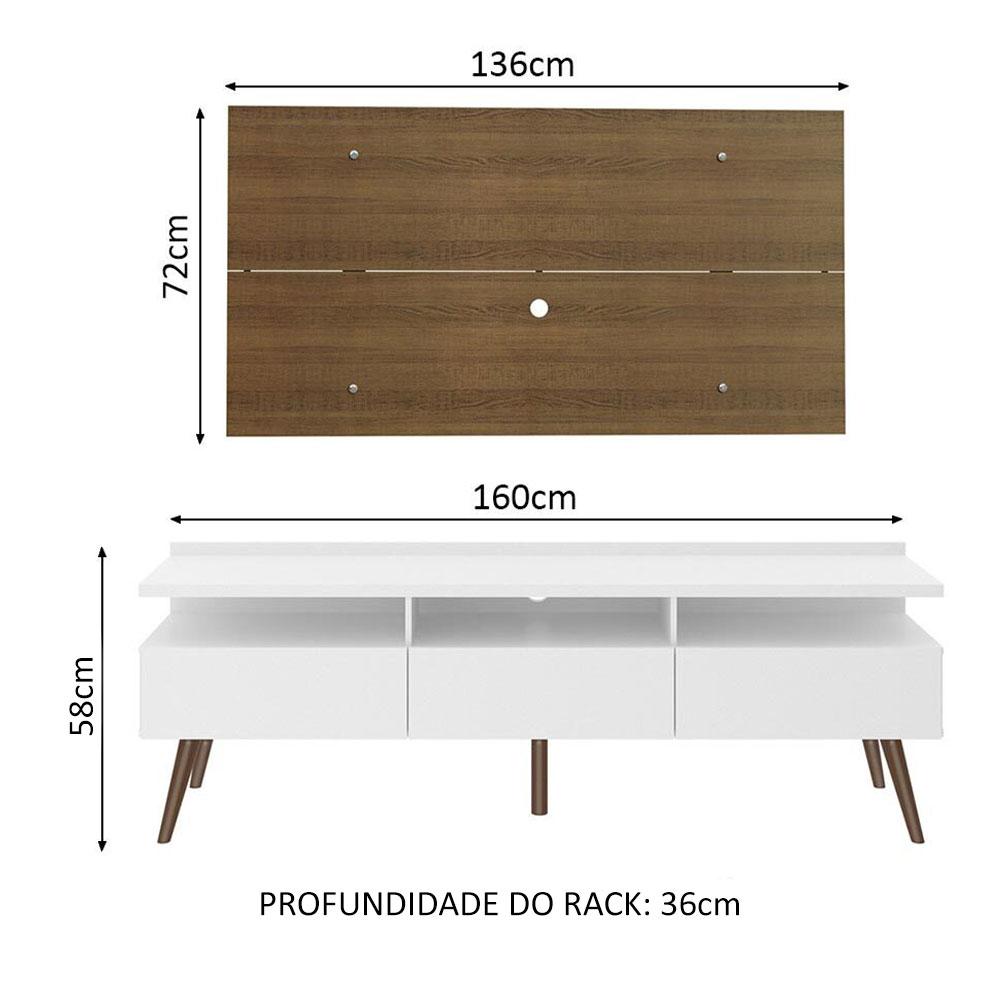 Rack Madesa Londres e Painel para TV até 55 Polegadas - Branco/Rustic