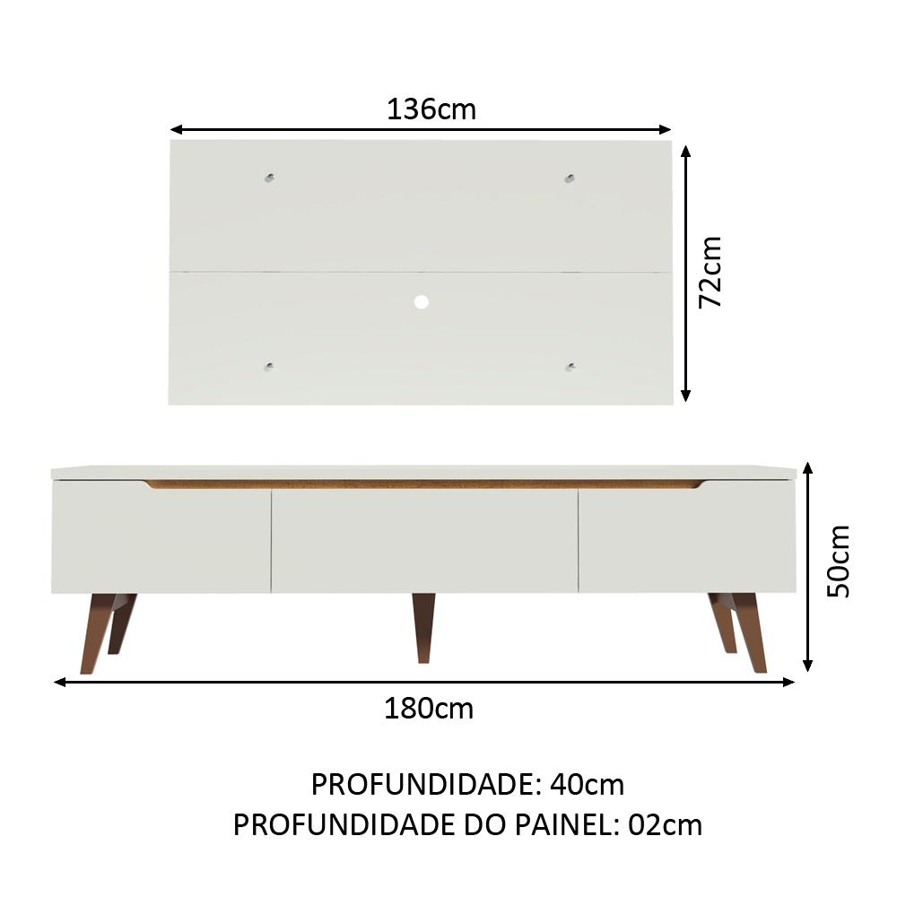 O Rack Reims da Madesa junto ao Painel para TV são a escolha perfeita para deixar a sua sala de estar organizada e de cara nova.O Rack conta com duas portas laterais e uma gaveta central com corrediças metálicas, espaços perfeitos para organizar objetos decorativos, livros, dvd ou o que mais você quiser. O destaque fica para os pés em madeira maciça em tom marrom. Além de proporcionarem melhor sustentação ao móvel, são muito bonitos e trazem um charme a mais para o ambiente.O Painel comporta TVs de até 55 polegadas. É de fácil instalação, possui passa fios e capas decorativas para esconder os parafusos de fixação. Segue com as ferragens necessárias para fixar o painel em parede de alvenaria.O acabamento do rack e do painel é branco e o rack possui detalhes em amadeirado Rustic. O processo é feito em Pintura Poliéster com 7 camadas de proteção, resistente a álcool, água e calor. Além de ser um processo ecológico, isento de vapores que vão para a atmosfera.Imagens meramente ilustrativas.Itens inclusos:- Um (1) Rack de 50 cm de altura x 180 cm de largura x 40 cm de profundidade- Um (1) Painel para TV de 72 cm de altura x 136 cm de largura (não acompanha suporte para fixação da TV)Código do produto: MDES02001109Obs.: A Madesa não disponibiliza serviço de montagem. O produto segue com manual de instalação e todas as ferragens necessárias para sua montagem.A Madesa se dedica à sustentabilidade com várias iniciativas: temos uma usina própria para gerar energia que abastece uma de nossas fábricas. Selecionamos nossos fornecedores, priorizando aqueles que possuem um compromisso com a sustentabilidade e proteção do meio ambiente. Todo o plástico utilizado no setor produtivo é proveniente de reciclagem e as suas sobras são encaminhadas ao fornecedor que os recicla. Também investimos no desenvolvimento contínuo de nossos colaboradores e em ações educacionais que beneficiem a comunidade.