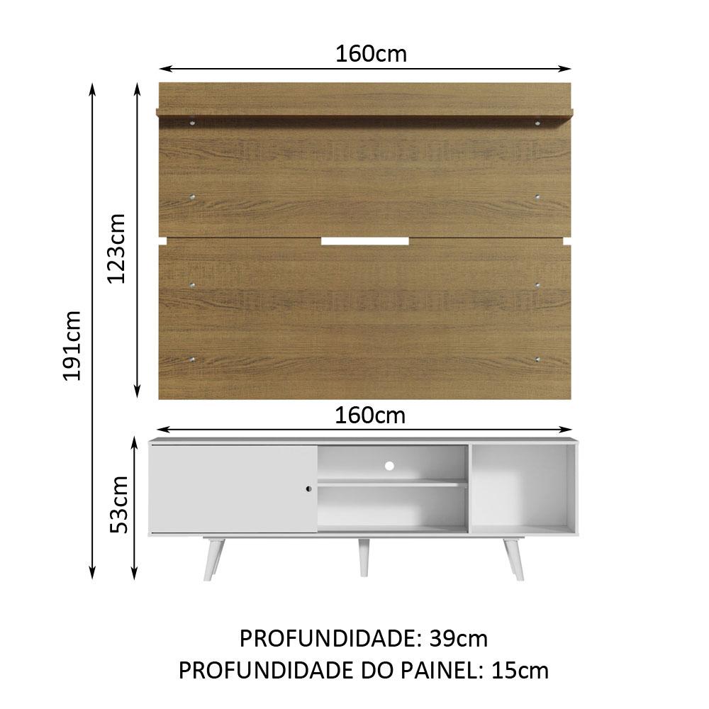 Rack Madesa Dubai e Painel para TV até 65 Polegadas com Pés - Branco/Rustic 096E