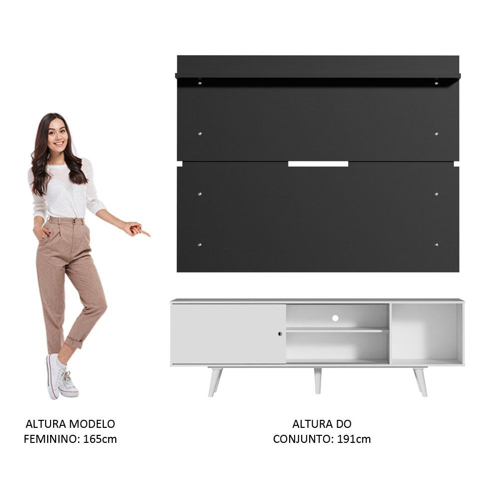 Rack Madesa Dubai e Painel para TV até 65 Polegadas com Pés - Branco/Preto 0977