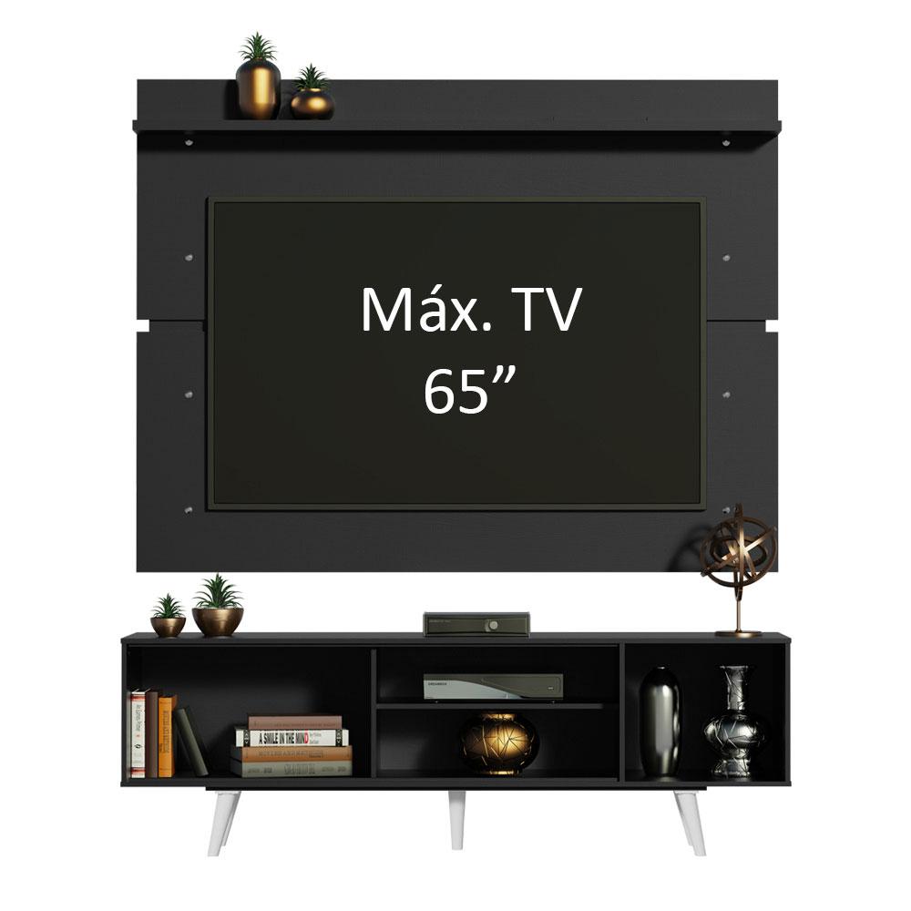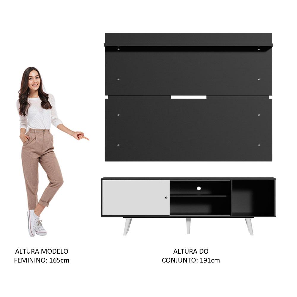 Rack Madesa Dubai e Painel para TV até 65 Polegadas com Pés - Preto/Branco 7777