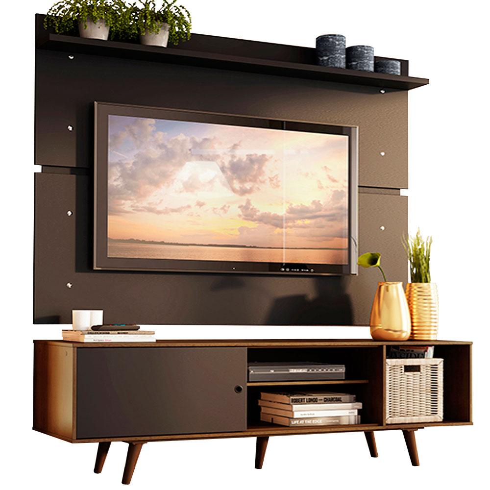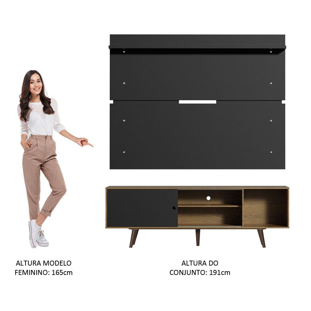 Rack Madesa Dubai e Painel para TV até 65 Polegadas com Pés - Rustic/Preto 7KD8