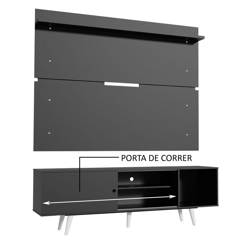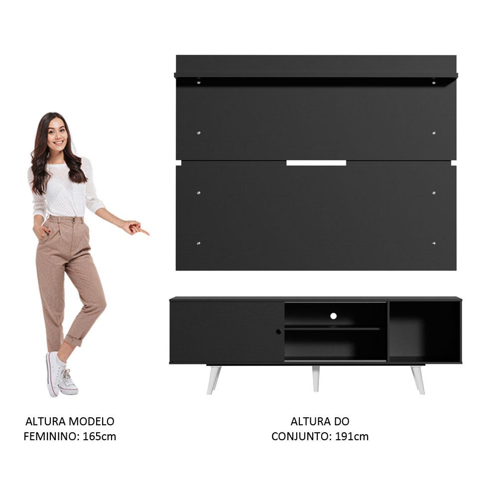 Rack Madesa Dubai e Painel para TV até 65 Polegadas com Pés - Preto/Branco