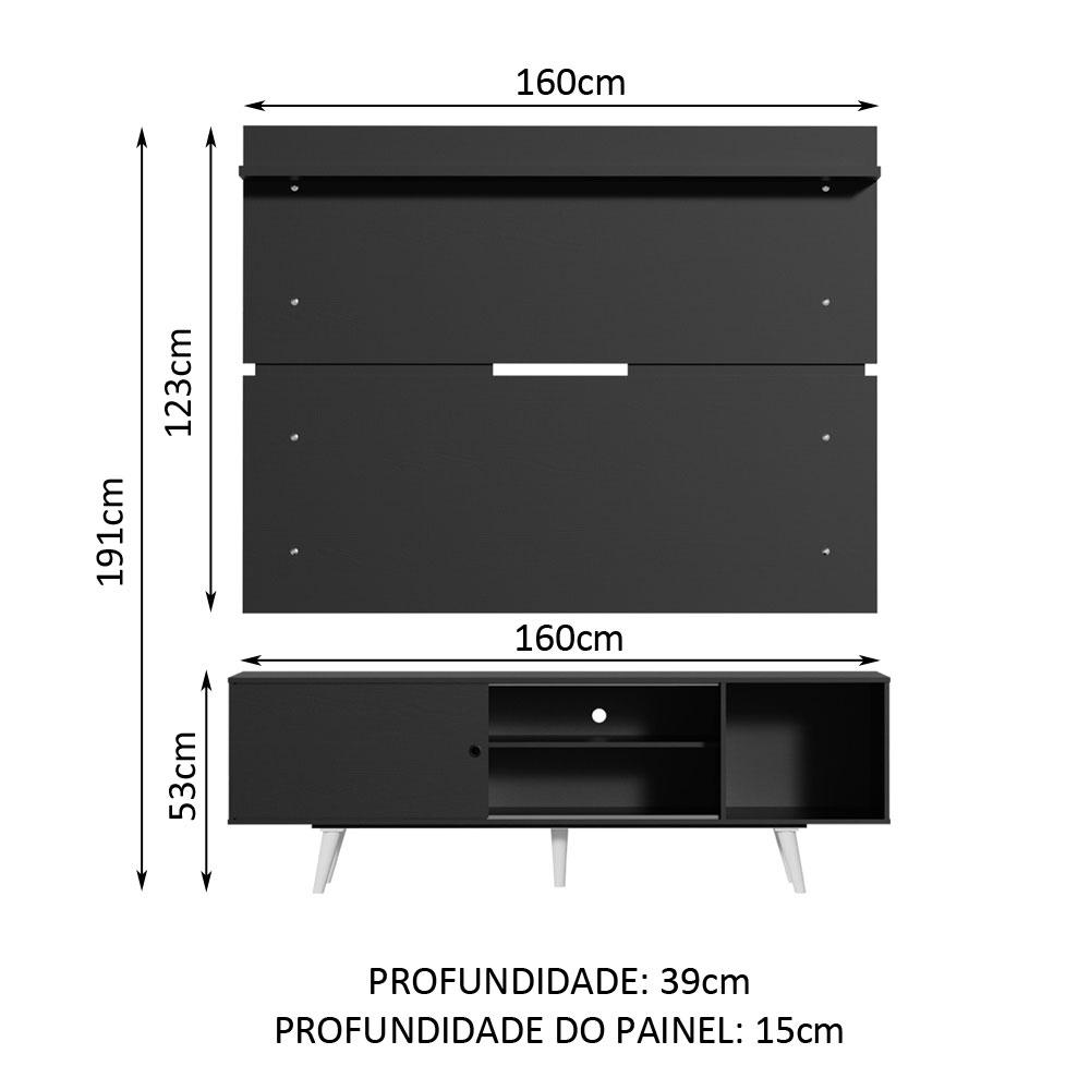 Praticidade, qualidade e elegância descrevem bem a combinação do Rack Dubai com o Painel 2101 da Madesa.Desenvolvido com base em tendências contemporâneas de design, o rack possui uma distribuição muito bem pensada: são quatro nichos de tamanhos variados e uma porta de correr. Assim, você tem espaço para decoração, aparelhos eletrônicos, livros e muito mais. Para completar, os pés conferem beleza e melhor sustentação ao móvel.O painel comporta TV de até 65 polegadas e contempla uma prateleira na parte superior, perfeita para objetos decorativos. Por ser separado do rack, pode ser fixado na altura desejada.Tanto o rack quanto o painel possuem abertura para a passagem dos fios dos aparelhos, um diferencial a mais para a comodidade no dia a dia.O acabamento do rack e do painel é preto e os pés do rack são brancos. O processo é feito em Pintura Poliéster ecológica com 7 camadas, detalhe que confere mais durabilidade e qualidade aos produtos.Imagens meramente ilustrativas.Itens inclusos:- Um (1) Rack de 53 cm de altura x 160 cm de largura x 39 cm de profundidade e pés em PVC- Um (1) Painel de 123 cm de altura x 160 cm de largura x 15 cm de profundidadeCódigo do produto: MDES0200148N77Obs: A Madesa não disponibiliza serviço de montagem. O produto segue com manual de instalação e todas as ferragens necessárias para sua montagem.1-O produto é novo ou usado?R.: Todos os produtos da Madesa são novos, enviados da nossa fábrica diretamente para as casas de nossos clientes.2-O produto vem montado? Se não, vocês realizam a montagem?R.: A Madesa não disponibiliza serviço de montagem. Todos os produtos seguem com manual de instalação e as ferragens necessárias. Alguns produtos possuem vídeo explicando o passo a passo da montagem.3-Vocês possuem loja física? Posso retirar meu produto em mãos?R.: Não possuímos loja física, apenas loja virtual. Confira as opções de envio ao colocar o seu CEP.4-Qual é o valor do envio? Posso pagar separadamente?R.: O valor do envio é calculado com base no peso e volume do produto, e no CEP de destino. Você pode calcular o valor e prazo de entrega no simulador.5-A Madesa entrega em todo Brasil? Como é feita a entrega?R.: Sim, entregamos no Brasil inteiro através de transportadoras parceiras.6-O produto acompanha Nota Fiscal?R.: Sim, todos os produtos são entregues com suas respectivas notas fiscais.7-Os produtos possuem garantia?R.: Sim. A Madesa oferece 3 meses de garantia para defeitos de fabricação.A Madesa se dedica à sustentabilidade com várias iniciativas: temos uma usina própria para gerar energia que abastece uma de nossas fábricas. Selecionamos nossos fornecedores, priorizando aqueles que possuem um compromisso com a sustentabilidade e proteção do meio ambiente. Todo o plástico utilizado no setor produtivo é proveniente de reciclagem e as suas sobras são encaminhadas ao fornecedor que os recicla. Também investimos no desenvolvimento contínuo de nossos colaboradores e em ações educacionais que beneficiem a comunidade.