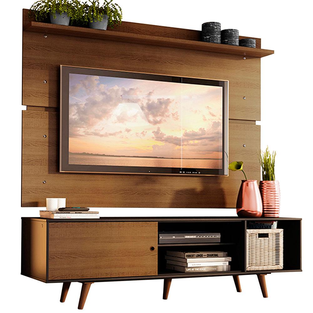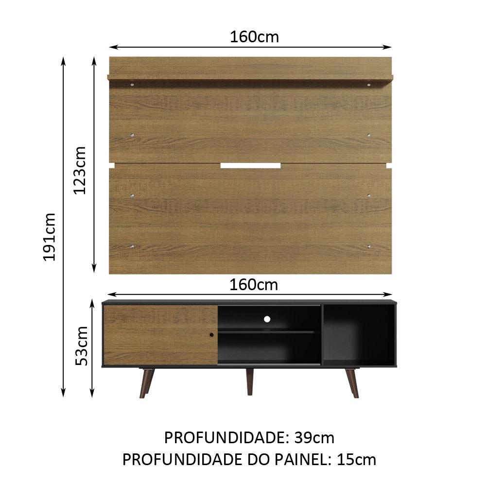 Rack Madesa Dubai e Painel para TV até 65 Polegadas com Pés - Preto/Rustic D85Z