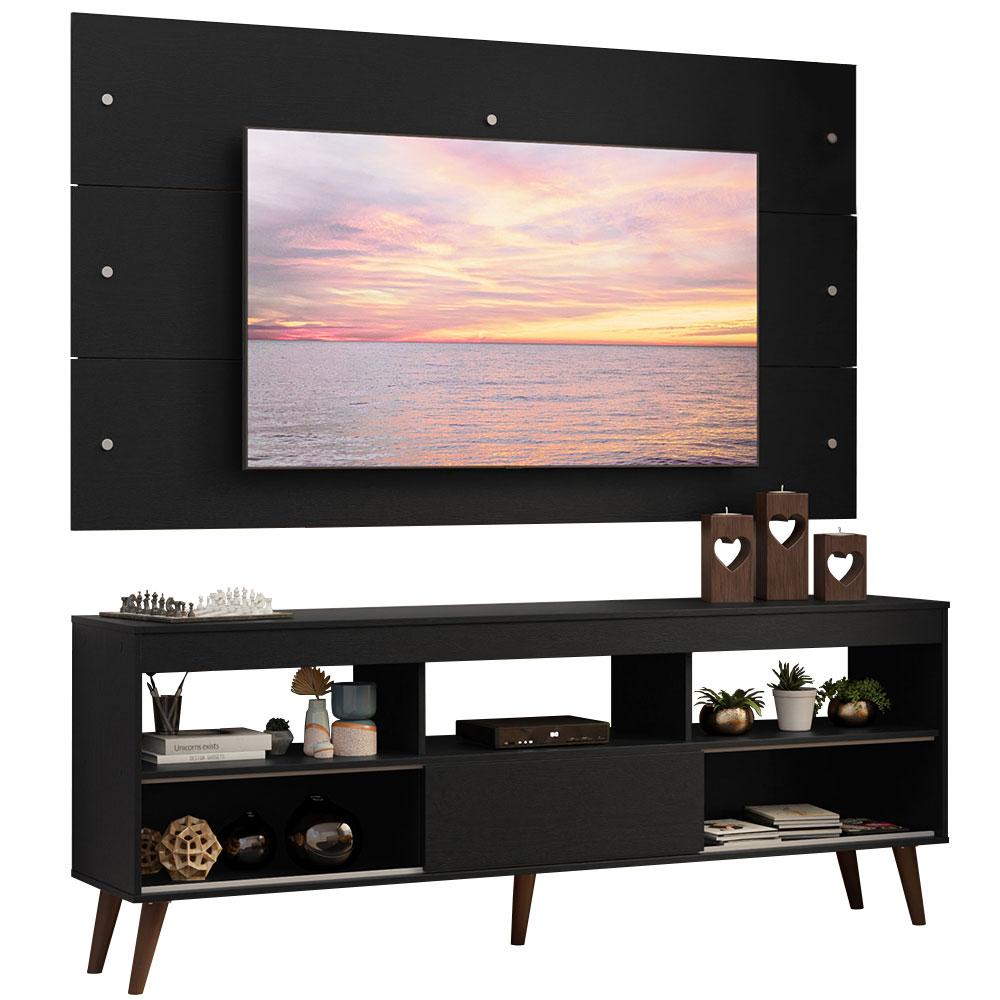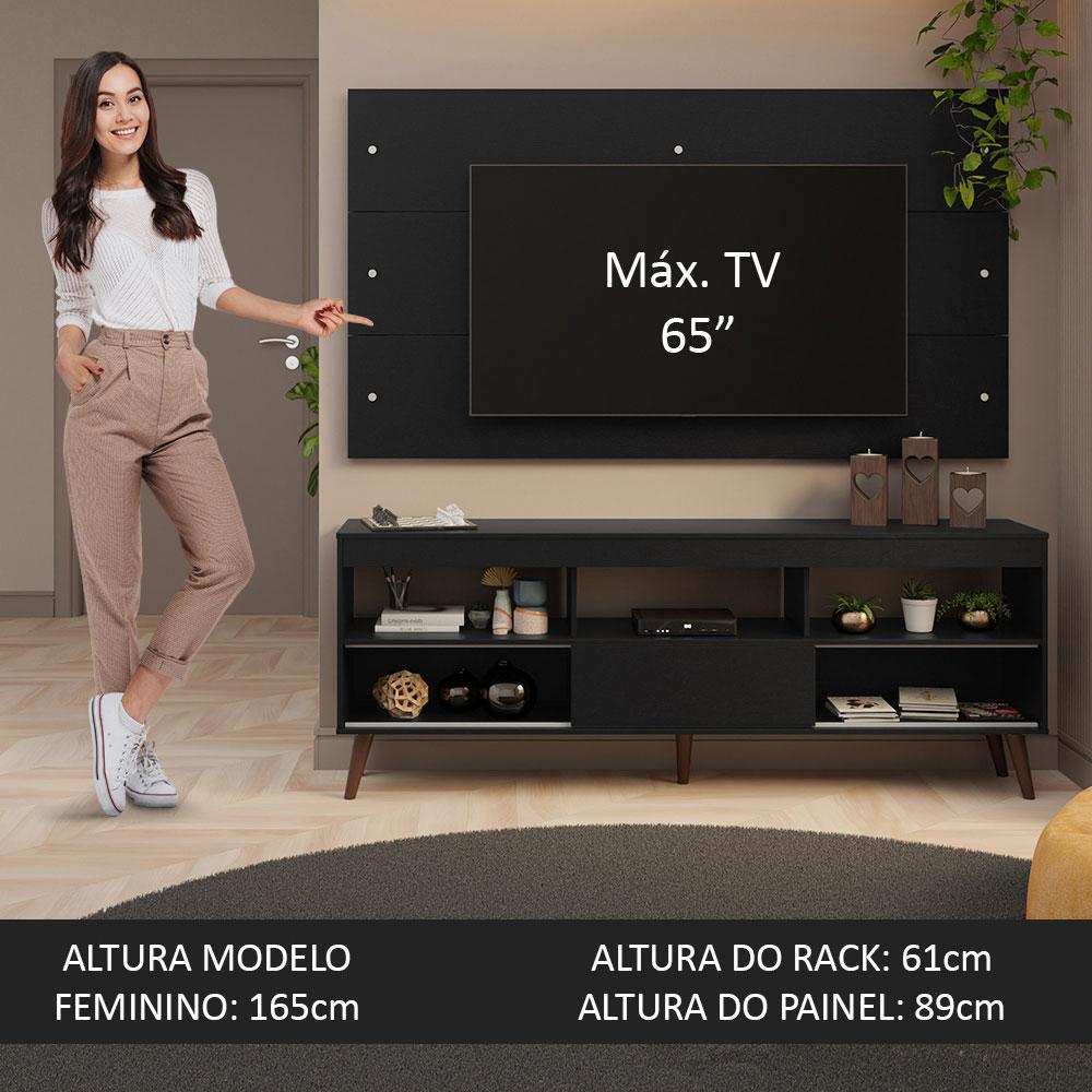 Rack com Painel para TV até 65 Polegadas com Pés Preto Detroit Madesa