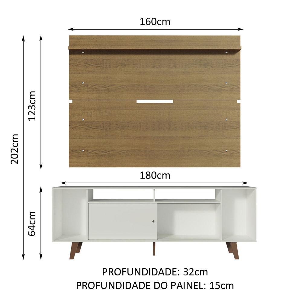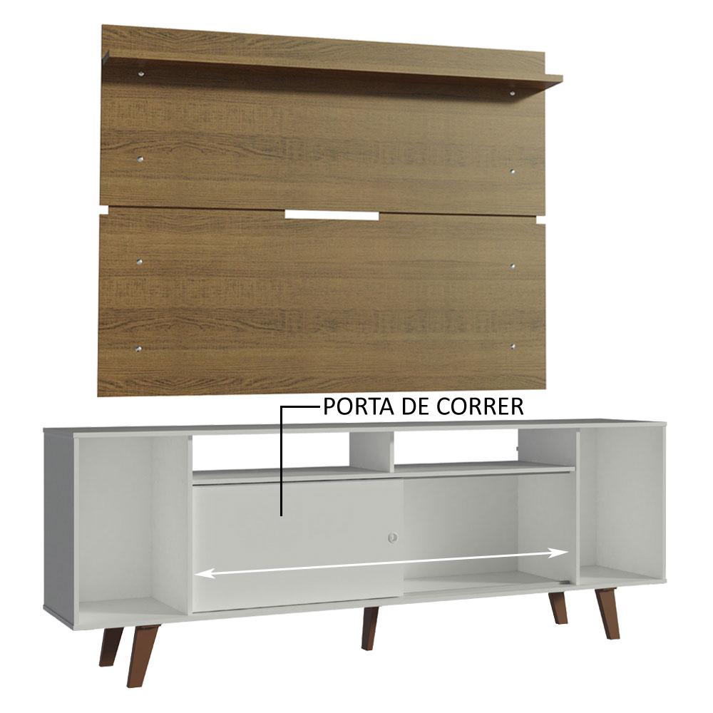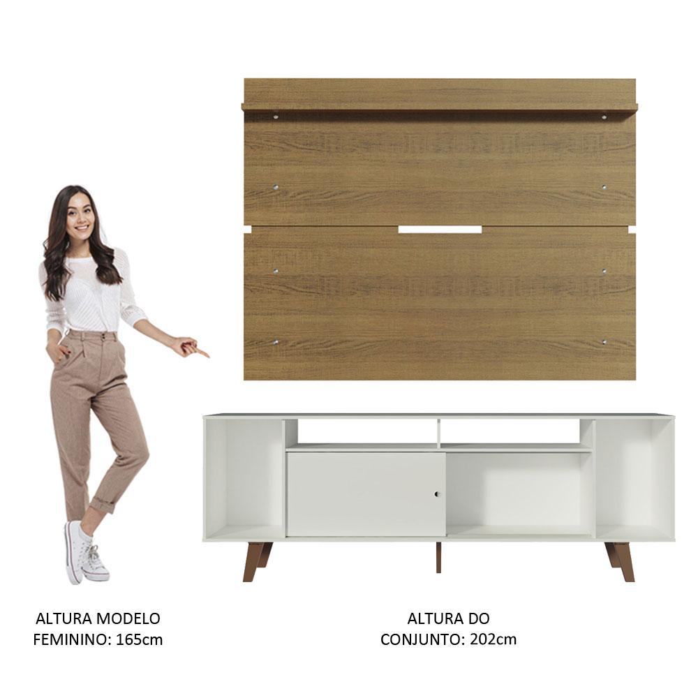 Rack Madesa Cancun com Pés e Painel para TV até 65 Polegadas - Branco/Rustic 095Z
