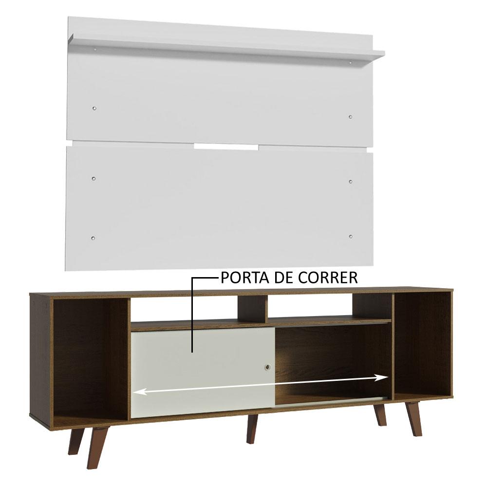 Rack Madesa Cancun com Pés e Painel para TV até 65 Polegadas - Rustic/Branco 6E9B