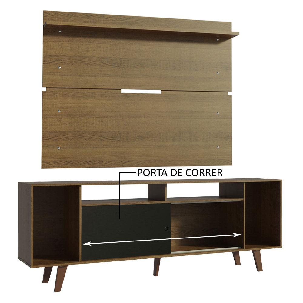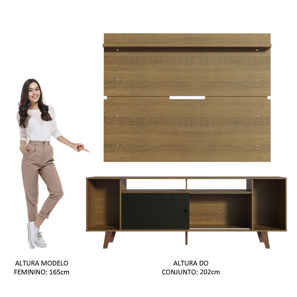 Rack Madesa Cancun com Pés e Painel para TV até 65 Polegadas - Rustic/Preto 7K5Z