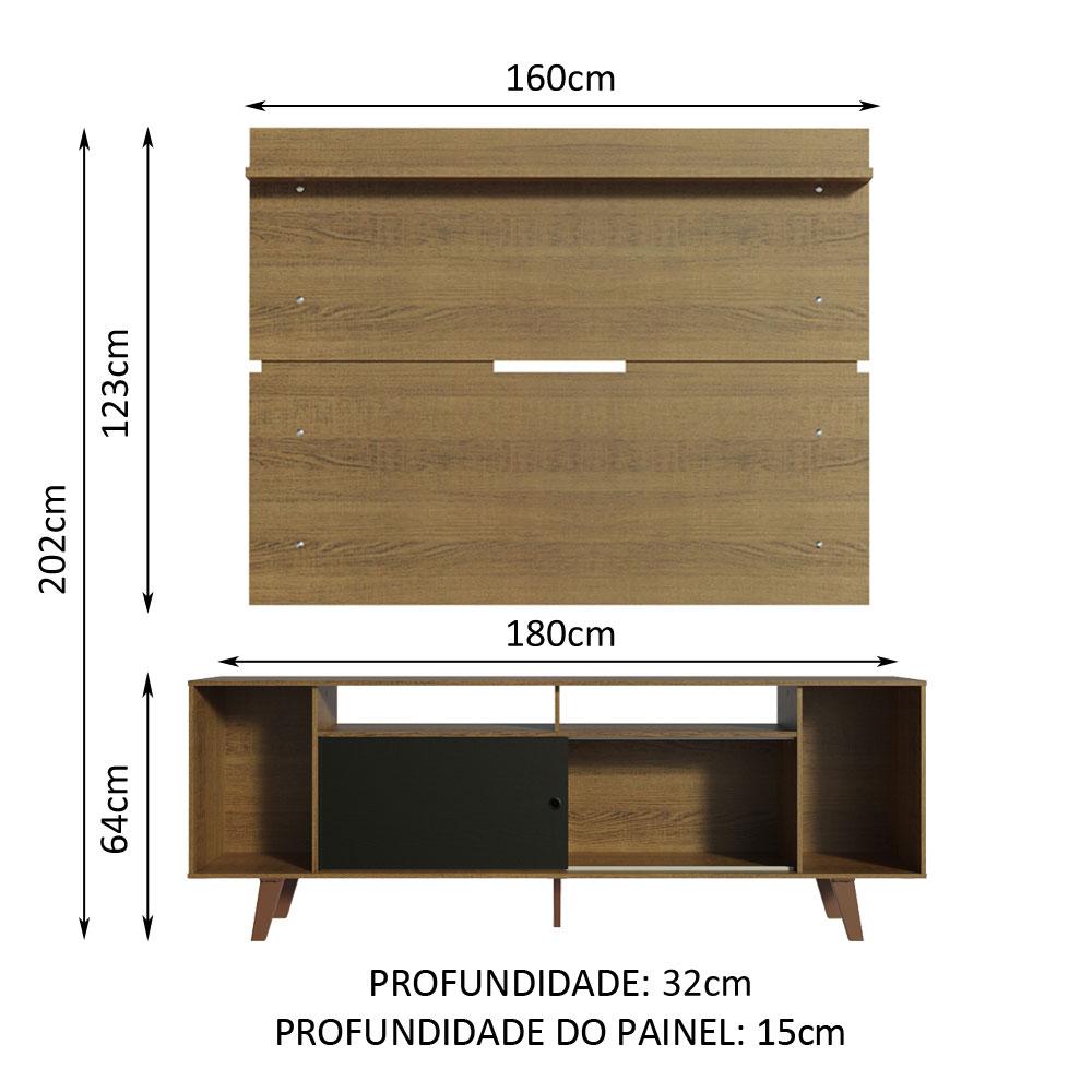A combinação do Rack Cancun com o Painel 2101 é a escolha ideal para renovar a sua sala de estar com toda a qualidade que os produtos da Madesa oferecem.Com design imponente, o rack conta com uma porta de correr e seis nichos. É perfeito para deixar tudo organizado, dos aparelhos eletrônicos até objetos decorativos, livros e revistas. Para completar, os pés aumentam a altura, complementam o visual e proporcionam melhor sustentação.O painel comporta TV de até 65 polegadas e conta com abertura para passar os fios. Contempla também uma prateleira na parte superior, perfeita para objetos decorativos. Por ser separado do rack, pode ser fixado na altura desejada.O acabamento dos móveis é no padrão amadeirado Rustic, com exceção da porta do rack, que é preta. É feito em Poliéster Protetor com 7 camadas, detalhe que confere mais durabilidade e qualidade aos produtos. Além disso, é ecológico, isento de vapores prejudiciais à atmosfera.As imagens são meramente ilustrativas.Itens inclusos:- Um (1) Rack de 64 cm de altura x 180 cm de largura x 32 cm de profundidade- Um (1) Painel de 123 cm de altura x 160 cm de largura x 15 cm de profundidadeCódigo do produto: MDES0200207K5ZObs: A Madesa não disponibiliza serviço de montagem. O produto segue com manual de instalação e todas as ferragens necessárias para sua montagem.1 – O produto é novo ou usado?R.: Todos os produtos da Madesa são novos, enviados da nossa fábrica diretamente para as casas de nossos clientes.2 – O produto vem montado? Se não, vocês realizam a montagem?R.: A Madesa não disponibiliza serviço de montagem. Todos os produtos seguem com manual de instalação e as ferragens necessárias. Alguns produtos possuem vídeo explicando o passo a passo da montagem.3 – Vocês possuem loja física? Posso retirar meu produto em mãos?R.: Não possuímos loja física, apenas loja virtual. Confira as opções de envio ao colocar o seu CEP.4 – Qual é o valor do envio? Posso pagar separadamente?R.: O valor do envio é calculado com base no peso e volume do produto, e no CEP de destino. Você pode calcular o valor e prazo de entrega no simulador.5 – A Madesa entrega em todo Brasil? Como é feita a entrega?R.: Sim, entregamos no Brasil inteiro através de transportadoras parceiras.6 – O produto acompanha Nota Fiscal?R.: Sim, todos os produtos são entregues com suas respectivas notas fiscais.7 – Os produtos possuem garantia?R.: Sim. A Madesa oferece 3 meses de garantia para defeitos de fabricação.A Madesa se dedica à sustentabilidade com várias iniciativas: temos uma usina própria para gerar energia que abastece uma de nossas fábricas. Selecionamos nossos fornecedores, priorizando aqueles que possuem um compromisso com a sustentabilidade e proteção do meio ambiente. Todo o plástico utilizado no setor produtivo é proveniente de reciclagem e as suas sobras são encaminhadas ao fornecedor que os recicla. Também investimos no desenvolvimento contínuo de nossos colaboradores e em ações educacionais que beneficiem a comunidade.