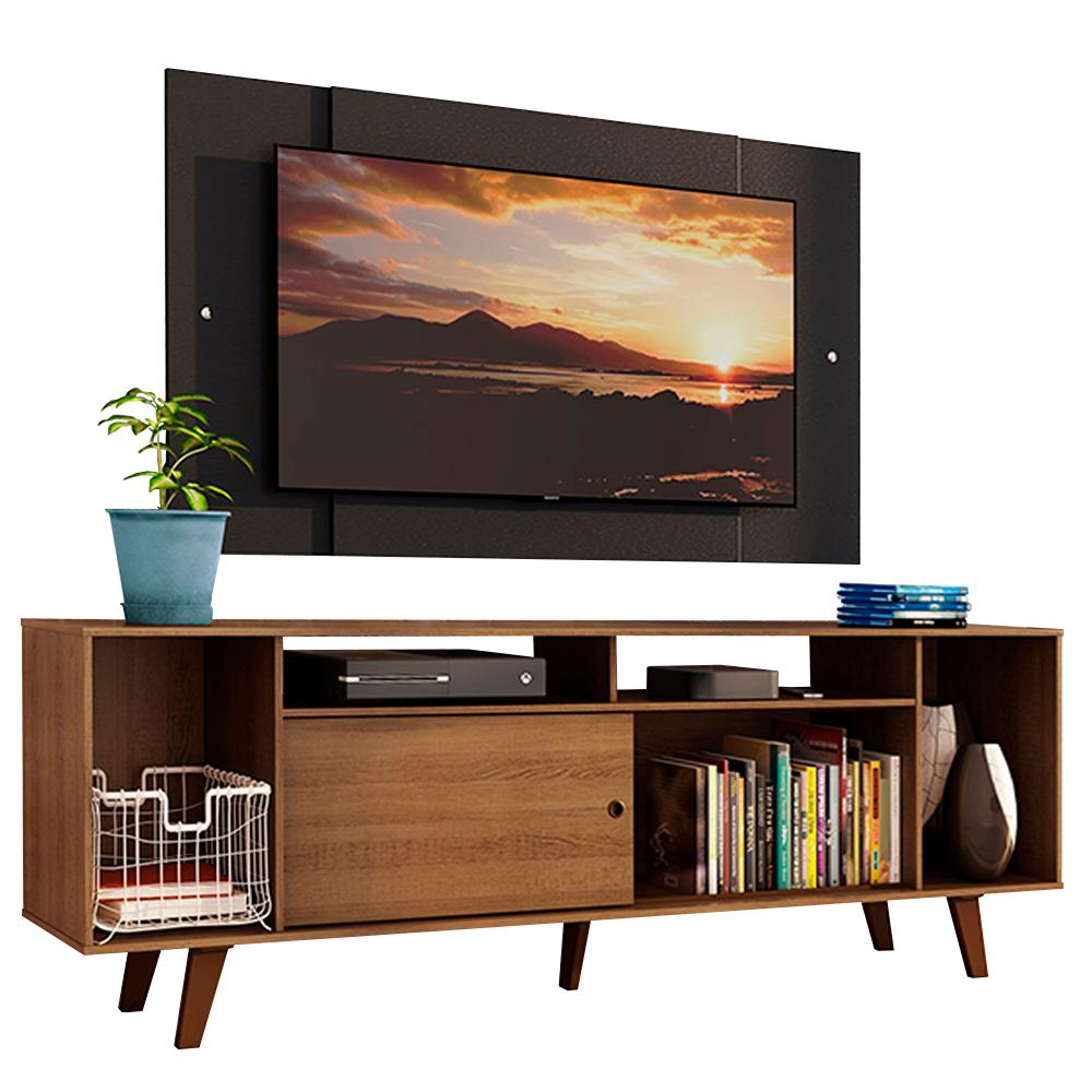 Rack Madesa Cancun e Painel para TV até 58 Polegadas com Pés - Rustic/Preto 5ZD8