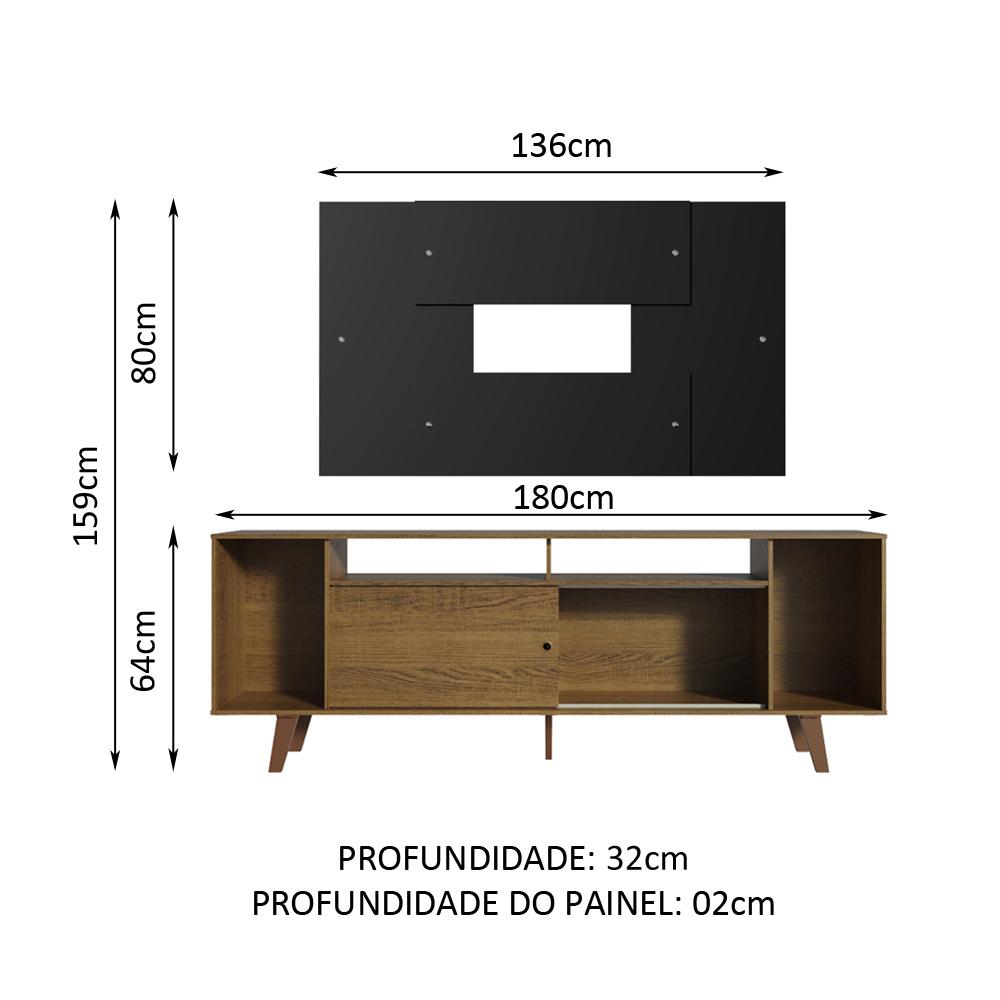 Renove sua sala com o que há de mais moderno em design. Conheça o conjunto do Rack Cancun com Pés e Painel 2185 da Madesa.O rack possui um tamanho ótimo, com uma porta de correr que permite fechar o lado esquerdo ou direito da abertura central. Além disso, são vários nichos de tamanhos variados. Assim, cabe tudo de maneira organizada, dos aparelhos eletrônicos até objetos decorativos, livros e revistas. Para completar, os pés dão mais firmeza e aumentam a altura do móvel.O painel tem design que mistura padrões verticais e horizontais. Comporta TV de até 58 polegadas e possui uma abertura central que facilita na passagem dos fios. Por ser separado do rack, pode ser fixado na altura desejada, conforme sua preferência ou necessidade.O acabamento do rack é no padrão amadeirado Rustic e o do painel é preto. O processo é feito em Poliéster Protetor com 7 camadas, detalhe que confere mais durabilidade e qualidade aos produtos. Além disso, é ecológico, isento de vapores prejudiciais à atmosfera.Imagens meramente ilustrativas.Itens inclusos:- Um (1) Rack de 64 cm de altura x 180 cm de largura x 32 cm de profundidade com pés em PVC- Um (1) Painel de 80 cm de altura x 136 cm de larguraCódigo do produto: MDES0200215ZD8Obs: A Madesa não disponibiliza serviço de montagem. O produto segue com manual de instalação e todas as ferragens necessárias para sua montagem.1-O produto é novo ou usado?R.: Todos os produtos da Madesa são novos, enviados da nossa fábrica diretamente para as casas de nossos clientes.2-O produto vem montado? Se não, vocês realizam a montagem?R.: A Madesa não disponibiliza serviço de montagem. Todos os produtos seguem com manual de instalação e as ferragens necessárias. Alguns produtos possuem vídeo explicando o passo a passo da montagem.3-Vocês possuem loja física? Posso retirar meu produto em mãos?R.: Não possuímos loja física, apenas loja virtual. Confira as opções de envio ao colocar o seu CEP.4-Qual é o valor do envio? Posso pagar separadamente?R.: O valor do envio é calculado com base no peso e volume do produto, e no CEP de destino. Você pode calcular o valor e prazo de entrega no simulador.5-A Madesa entrega em todo Brasil? Como é feita a entrega?R.: Sim, entregamos no Brasil inteiro através de transportadoras parceiras.6-O produto acompanha Nota Fiscal?R.: Sim, todos os produtos são entregues com suas respectivas notas fiscais.7-Os produtos possuem garantia?R.: Sim. A Madesa oferece 3 meses de garantia para defeitos de fabricação.A Madesa se dedica à sustentabilidade com várias iniciativas: temos uma usina própria para gerar energia que abastece uma de nossas fábricas. Selecionamos nossos fornecedores, priorizando aqueles que possuem um compromisso com a sustentabilidade e proteção do meio ambiente. Todo o plástico utilizado no setor produtivo é proveniente de reciclagem e as suas sobras são encaminhadas ao fornecedor que os recicla. Também investimos no desenvolvimento contínuo de nossos colaboradores e em ações educacionais que beneficiem a comunidade.