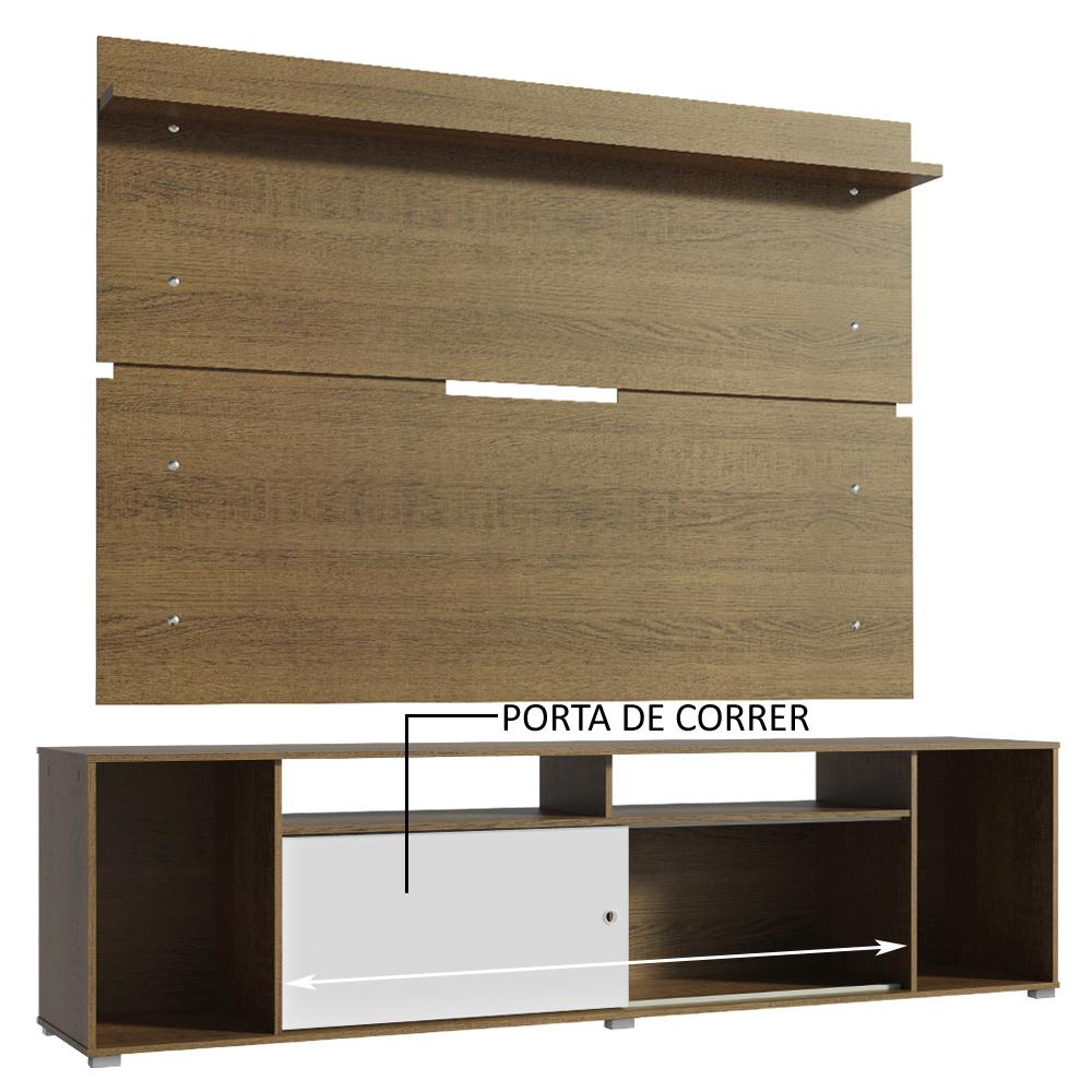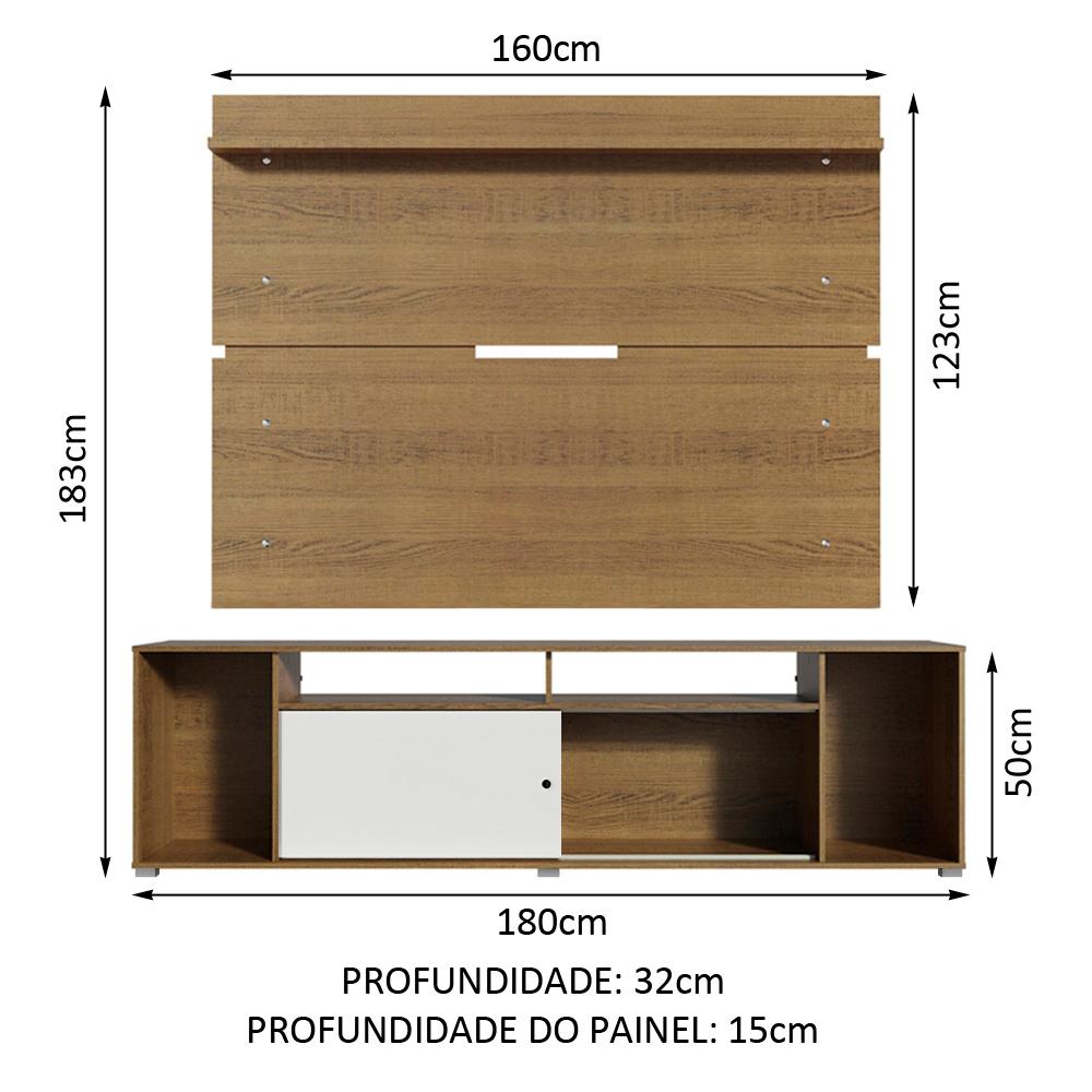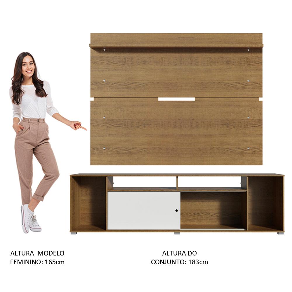Rack Madesa Cancun e Painel para TV até 65 Polegadas - Rustic/Rustic/Branco