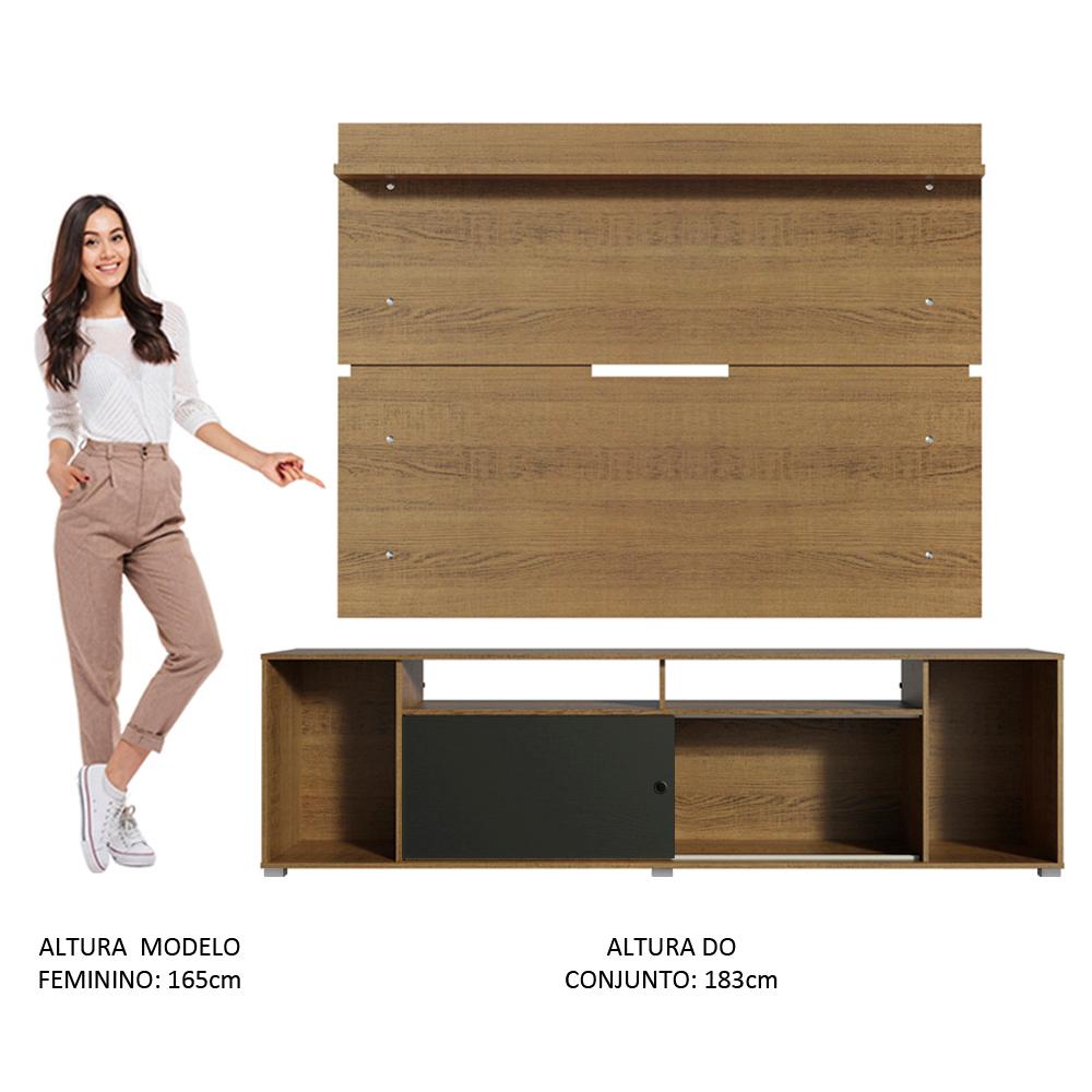 Rack Madesa Cancun e Painel para TV até 65 Polegadas - Rustic/Rustic/Preto