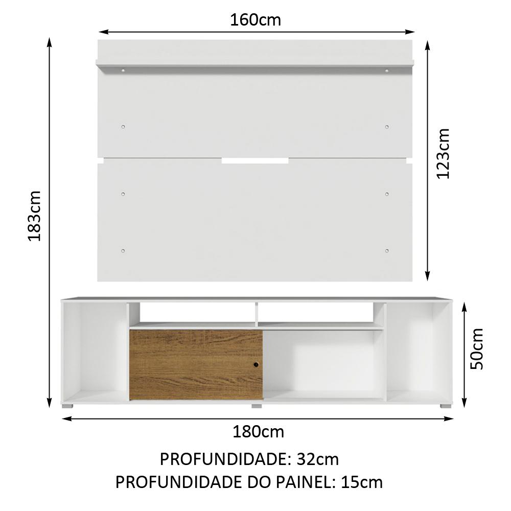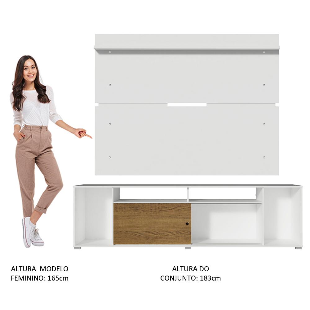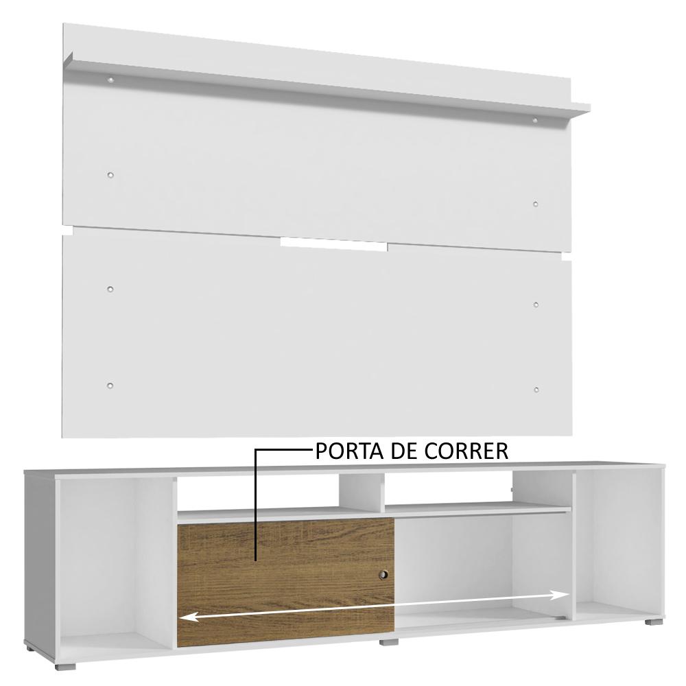 Rack Madesa Cancun e Painel para TV até 65 Polegadas - Branco/Rustic/Branco