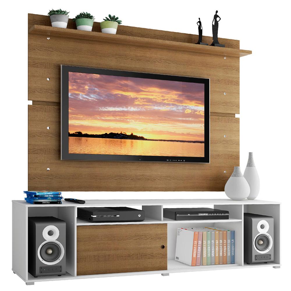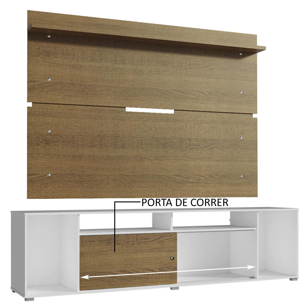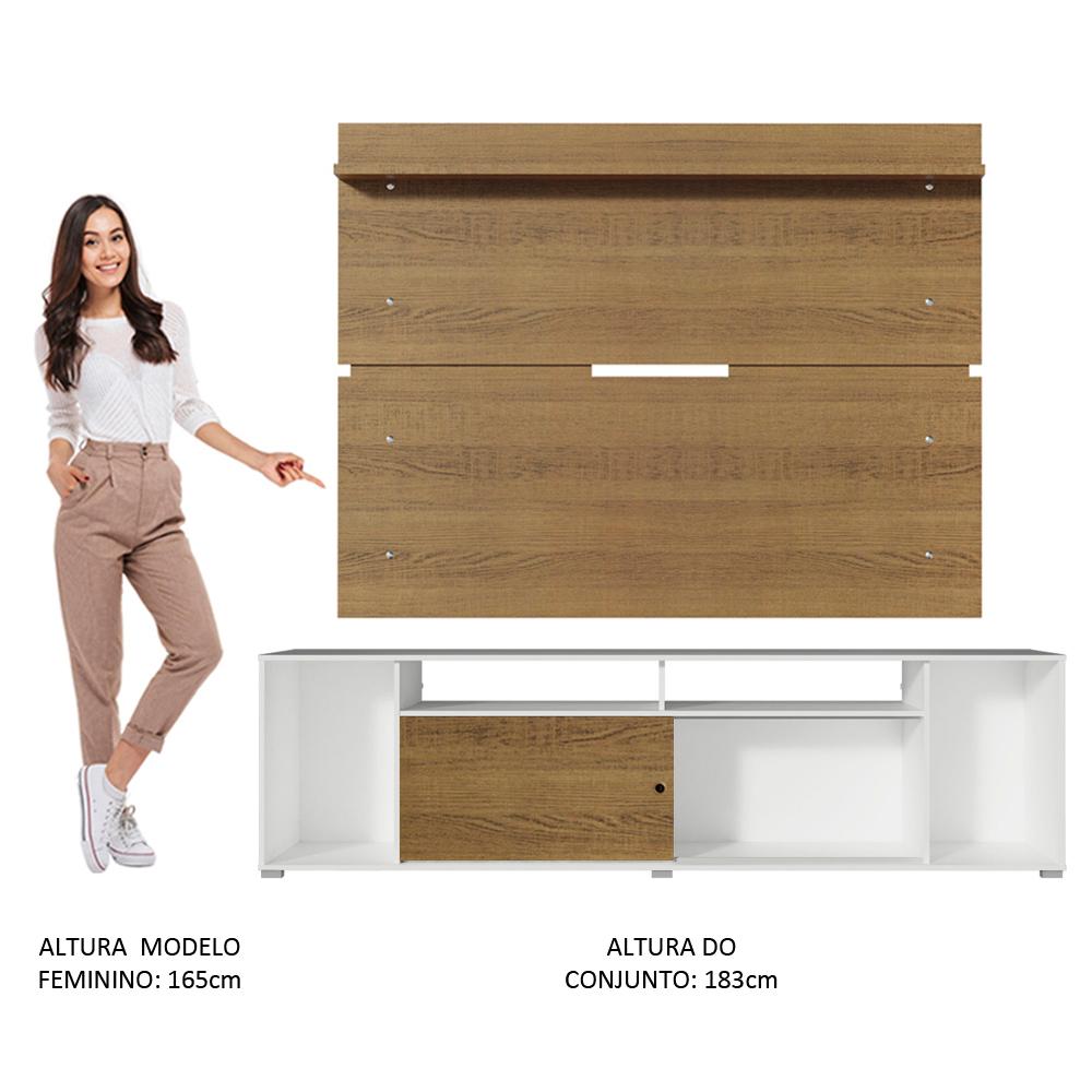 Rack Madesa Cancun e Painel para TV até 65 Polegadas - Branco/Rustic/Rustic