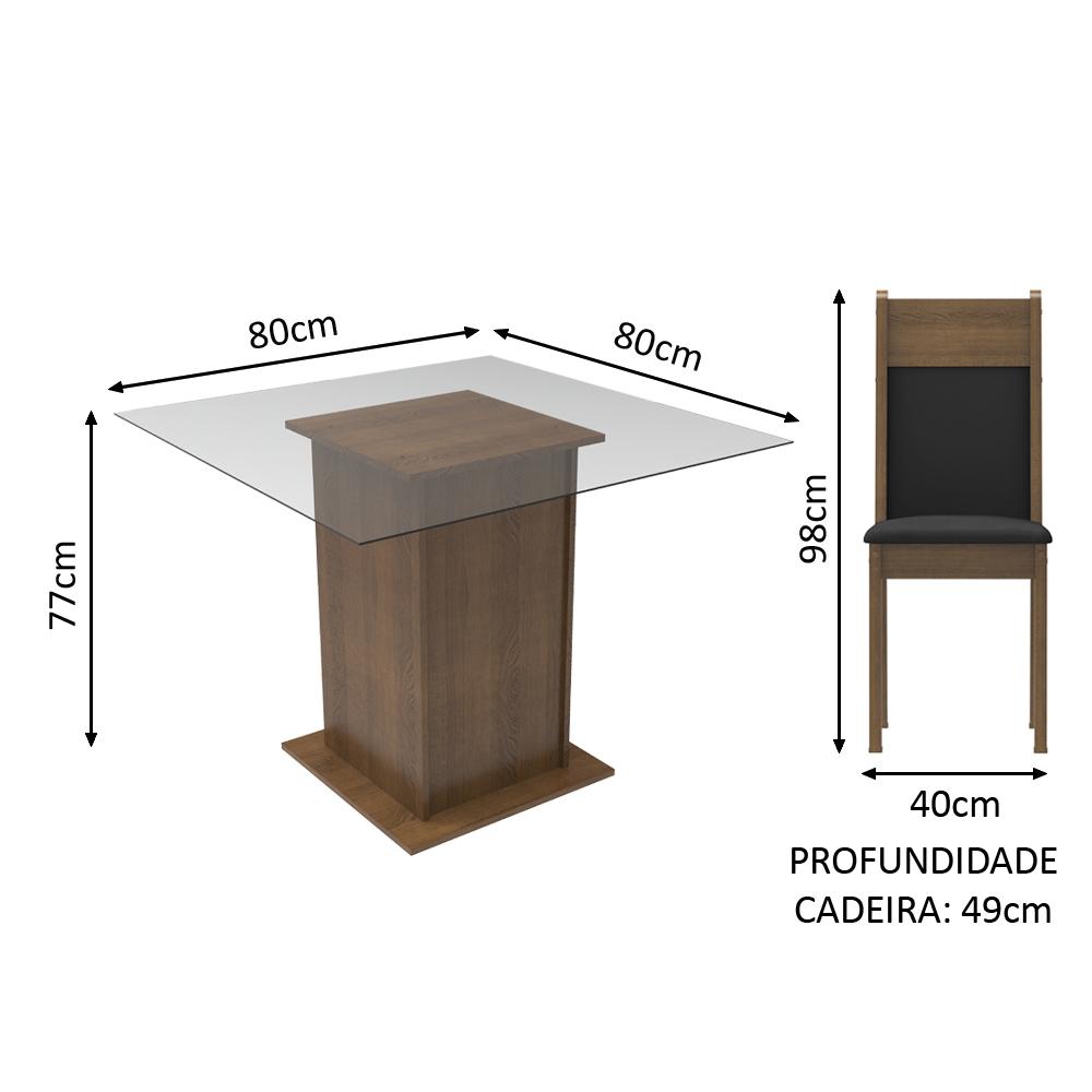 Conjunto Sala de Jantar Madesa Moni Mesa Tampo de Vidro 2 Cadeiras - Rustic/Preto/Sintético Preto