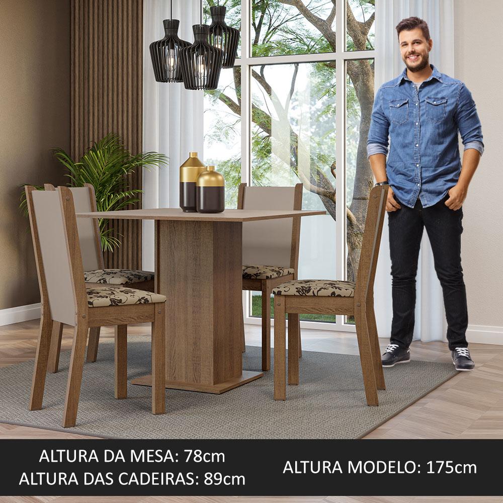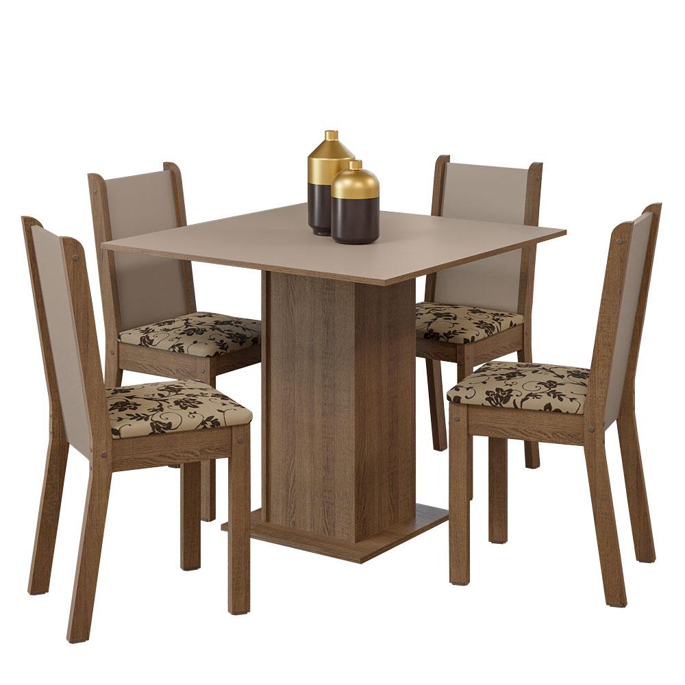 Conjunto Sala de Jantar Mesa Tampo de Madeira 4 Cadeiras Rustic/Crema/Bege Marrom Alana Madesa