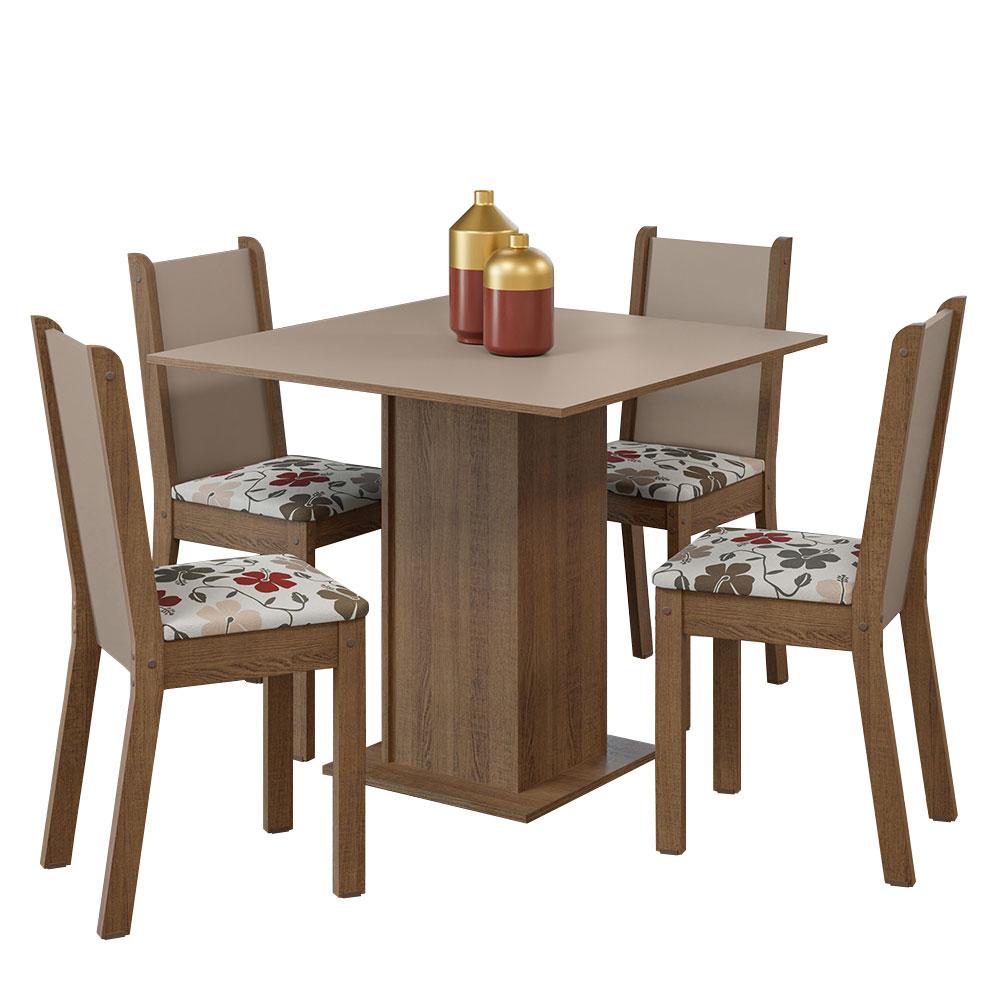 Conjunto Sala de Jantar Mesa Tampo de Madeira 4 Cadeiras Rustic/Crema/Hibiscos Alana Madesa