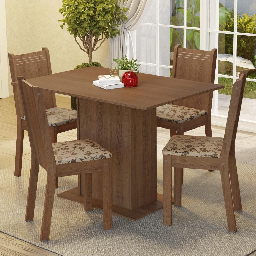 Conjunto Sala de Jantar Madesa Luana Mesa Tampo de Madeira com 4 Cadeiras - Rustic/Bege Marrom