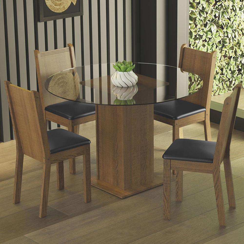 Conjunto Sala de Jantar Madesa Débora Mesa Tampo de Vidro Redondo 4 Cadeiras - Rustic/Preto
