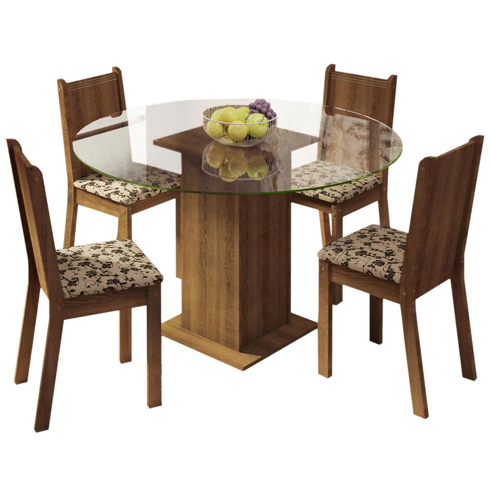 Conjunto Sala de Jantar Madesa Paula Mesa Tampo de Vidro Redondo 4 Cadeiras - Rustic/Bege Marrom