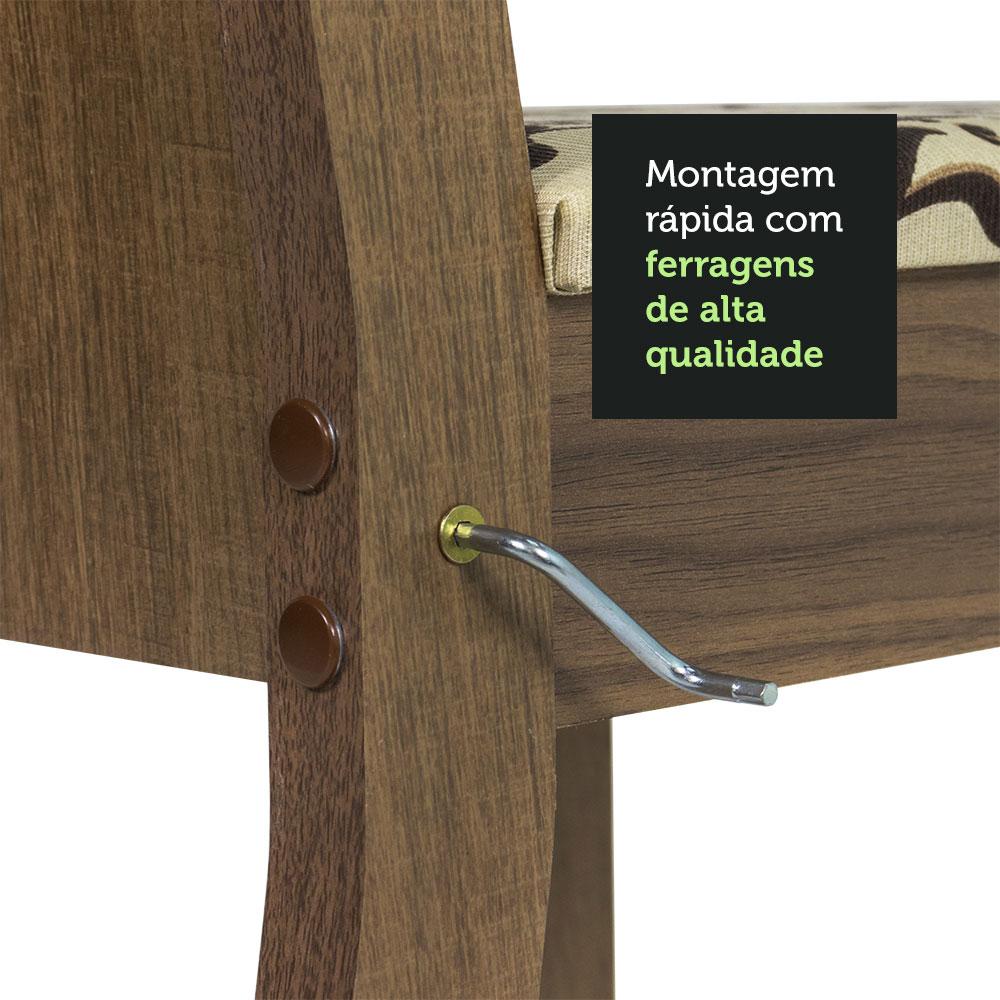 O Conjunto de Jantar Paula da Madesa é perfeito para renovar sua sala de jantar ou cozinha com design moderno e muita praticidade.A mesa é um grande diferencial deste conjunto. Possui base em pedestal e um tampo de vidro redondo, super sofisticado e elegante, ao mesmo tempo que torna o ambiente mais leve. Além disso, é extremamente seguro e fácil de instalar.As cadeiras são produzidas em MDF e MDP, com encosto de madeira, combinando com a base da mesa. Possuem assento estofado, confortável e perfeito para relaxar. O tecido Floral Bege Marrom tem toque macio e combina com os mais variados ambientes.O acabamento é no padrão amadeirado Rustic, em Pintura Poliéster ecológica, que consiste na aplicação de sete camadas de proteção resistentes a álcool, água e calor.Medidas da cadeira:- 89 cm de altura- 37 cm de largura- 44 cm de profundidadeMedidas da mesa:- 76 cm de altura- 110 cm de diâmetro no tampoItens inclusos:- Uma (1) mesa com base pedestal e tampo redondo de vidro- Quatro (4) cadeiras com assento estofadoCódigo do produto: MDJA0401175ZFBMObs.:- A Madesa não disponibiliza serviço de montagem- Imagens meramente ilustrativas, o conjunto é composto pela mesa e quatro cadeiras- O produto segue com manual e todas as ferragens necessárias para a instalação1 – O produto é novo ou usado?R.: Todos os produtos da Madesa são novos, enviados da nossa fábrica diretamente para as casas de nossos clientes.2 – O produto vem montado? Se não, vocês realizam a montagem?R.: A Madesa não disponibiliza serviço de montagem. Todos os produtos seguem com manual de instalação e as ferragens necessárias. Alguns produtos possuem vídeo explicando o passo a passo da montagem.3 – Vocês possuem loja física? Posso retirar meu produto em mãos?R.: Não possuímos loja física, apenas loja virtual. Confira as opções de envio ao colocar o seu CEP.4 – Qual é o valor do envio? Posso pagar separadamente?R.: O valor do envio é calculado com base no peso e volume do produto, e no CEP de destino. Você pode calcular o valor e prazo de entrega no simulador.5 – A Madesa entrega em todo Brasil? Como é feita a entrega?R.: Sim, entregamos no Brasil inteiro através de transportadoras parceiras.6 – O produto acompanha Nota Fiscal?R.: Sim, todos os produtos são entregues com suas respectivas notas fiscais.7 – Os produtos possuem garantia?R.: Sim. A Madesa oferece 3 meses de garantia para defeitos de fabricação.A Madesa se dedica à sustentabilidade com várias iniciativas: temos uma usina própria para gerar energia que abastece uma de nossas fábricas. Selecionamos nossos fornecedores, priorizando aqueles que possuem um compromisso com a sustentabilidade e proteção do meio ambiente. Todo o plástico utilizado no setor produtivo é proveniente de reciclagem e as suas sobras são encaminhadas ao fornecedor que os recicla. Também investimos no desenvolvimento contínuo de nossos colaboradores e em ações educacionais que beneficiem a comunidade.
