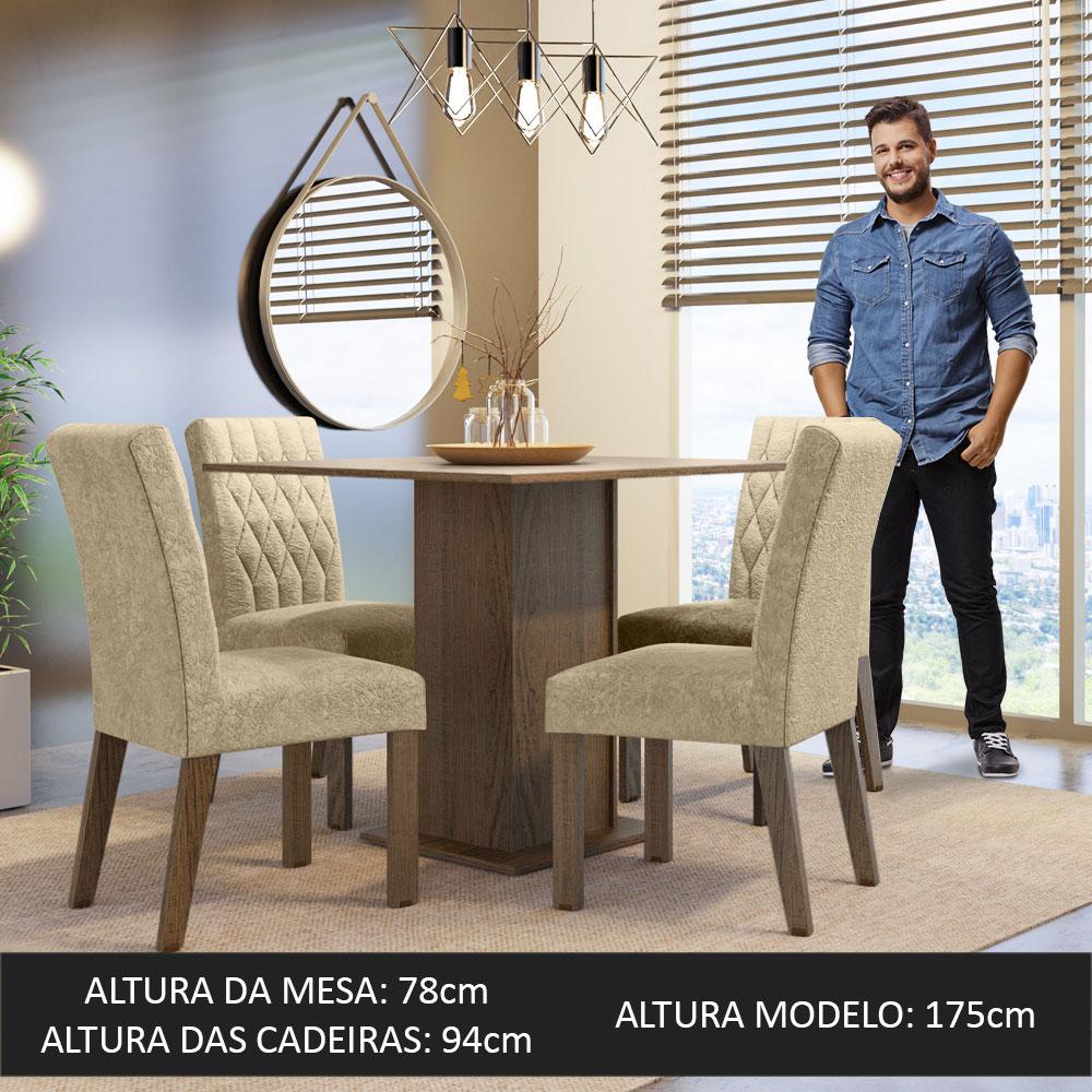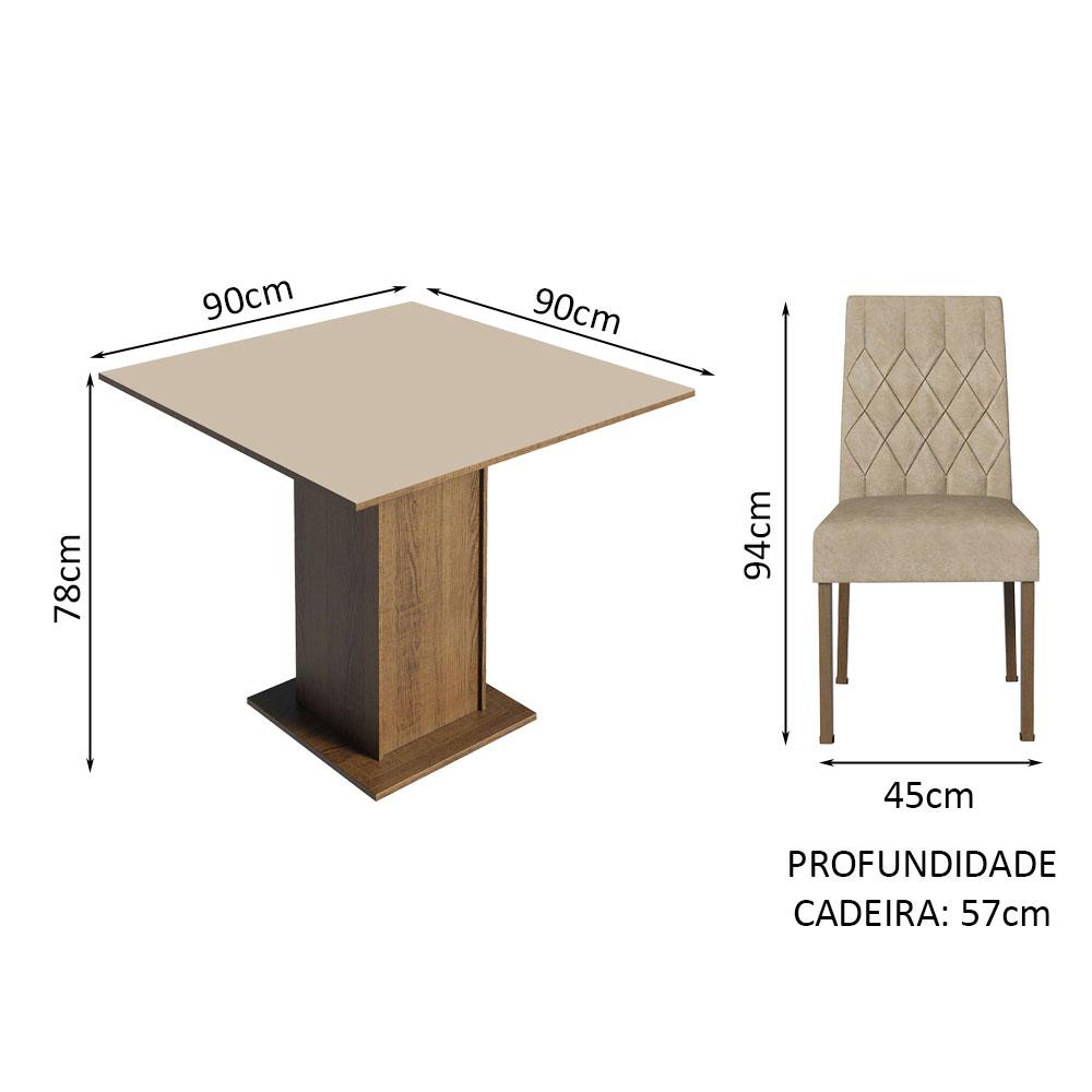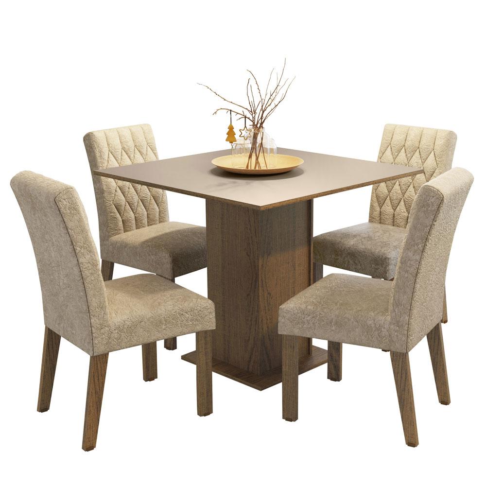 Conjunto Sala de Jantar Mesa Tampo de Madeira 4 Cadeiras Rustic/Crema/Imperial Livia Madesa