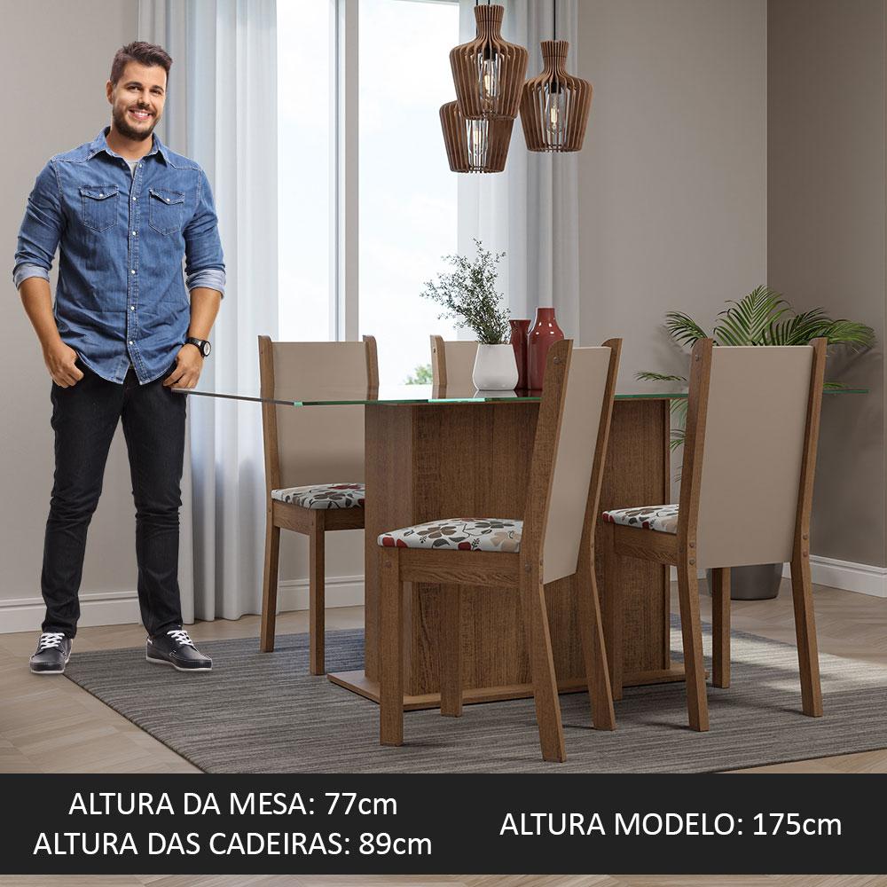Conjunto Sala de Jantar Mesa Tampo de Vidro 4 Cadeiras Rustic/Crema/Floral Hibiscos Yara Madesa