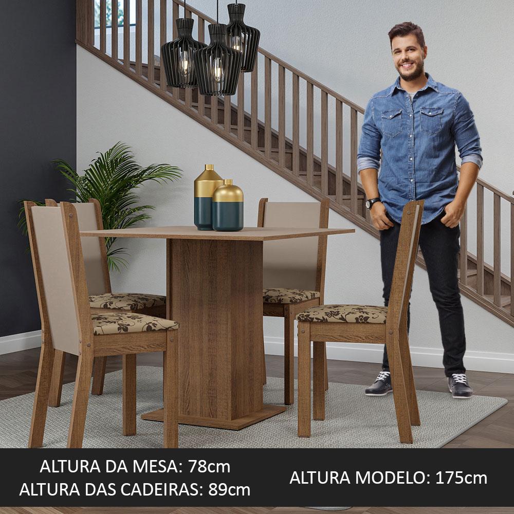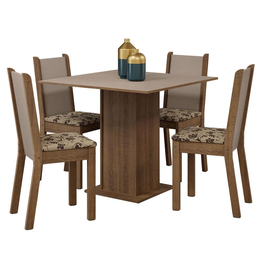 Conjunto Sala de Jantar Mesa Tampo de Madeira 4 Cadeiras Rustic/Crema/Bege Marrom Briana Madesa