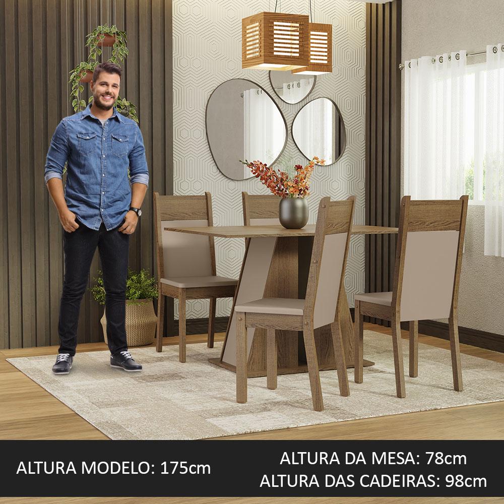 Conjunto Sala de Jantar Mesa Tampo de Madeira 4 Cadeiras Rustic/Crema/Bege Angel Madesa