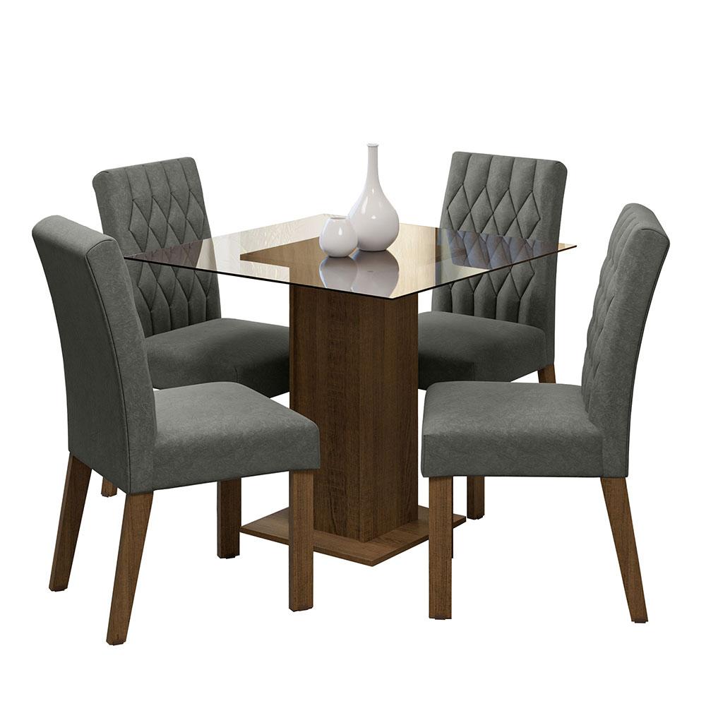 Conjunto Sala de Jantar Mesa Tampo de Vidro 4 Cadeiras Rustic/Silver Noemi Madesa