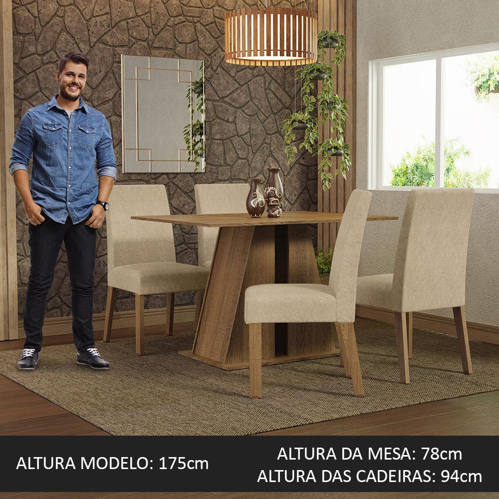 O Conjunto de Jantar Agnes, da Madesa, é a escolha perfeita para quem busca um ambiente moderno e aconchegante para as refeições.A mesa, com base em pedestal em formato de trapézio, é elegante e moderna, além de oferecer ótimo espaço para as pernas. O tampo em MDP é firme e seguro, ideal para até quatro pessoas.As cadeiras são robustas e confortáveis, com estrutura em MDP e MDF. O encosto e assento estofados com espumas de alta densidade são revestidos em tecido Suede Imperial, que é macio e agradável ao toque.Com este conjunto, você pode criar um ambiente de jantar elegante e convidativo, seja na cozinha ou na sala de jantar. Para completar, o acabamento dos móveis é feito com 7 camadas de Pintura Poliéster ecológica, que oferece resistência a álcool, água e calor.Medidas da cadeira: - 94 cm de altura- 45 cm de largura- 57 cm de profundidadeMedidas da mesa: - 78 cm de altura- 120 cm de largura- 90 cm de profundidadeItens inclusos: - Uma (1) Mesa com base pedestal e tampo de MDP- Quatro (4) Cadeiras com assento e encosto estofadosCódigo do produto: MDJA0401755ZSIMObs.: - A Madesa não disponibiliza serviço de montagem- Imagens meramente ilustrativas, o conjunto é composto pela mesa e quatro cadeiras- O produto segue com manual e todas as ferragens necessárias para a instalaçãoA Madesa se dedica à sustentabilidade com várias iniciativas: temos uma usina própria para gerar energia que abastece uma de nossas fábricas. Selecionamos nossos fornecedores, priorizando aqueles que possuem um compromisso com a sustentabilidade e proteção do meio ambiente. Todo o plástico utilizado no setor produtivo é proveniente de reciclagem e as suas sobras são encaminhadas ao fornecedor que os recicla. Também investimos no desenvolvimento contínuo de nossos colaboradores e em ações educacionais que beneficiem a comunidade.