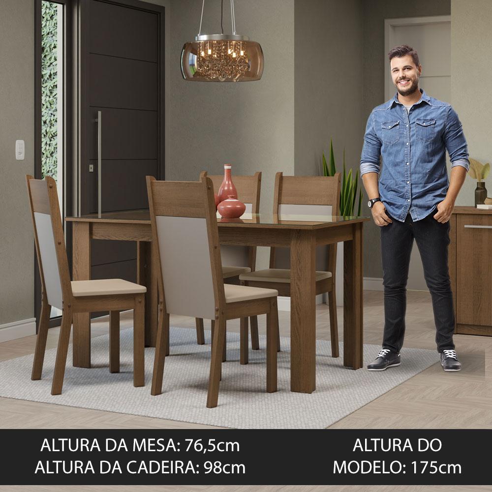 Conjunto Sala de Jantar Mesa Tampo de Vidro 4 Cadeiras Rustic/Crema/Bege Eloá Madesa
