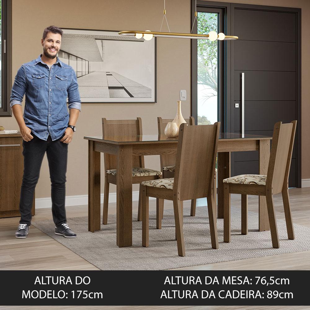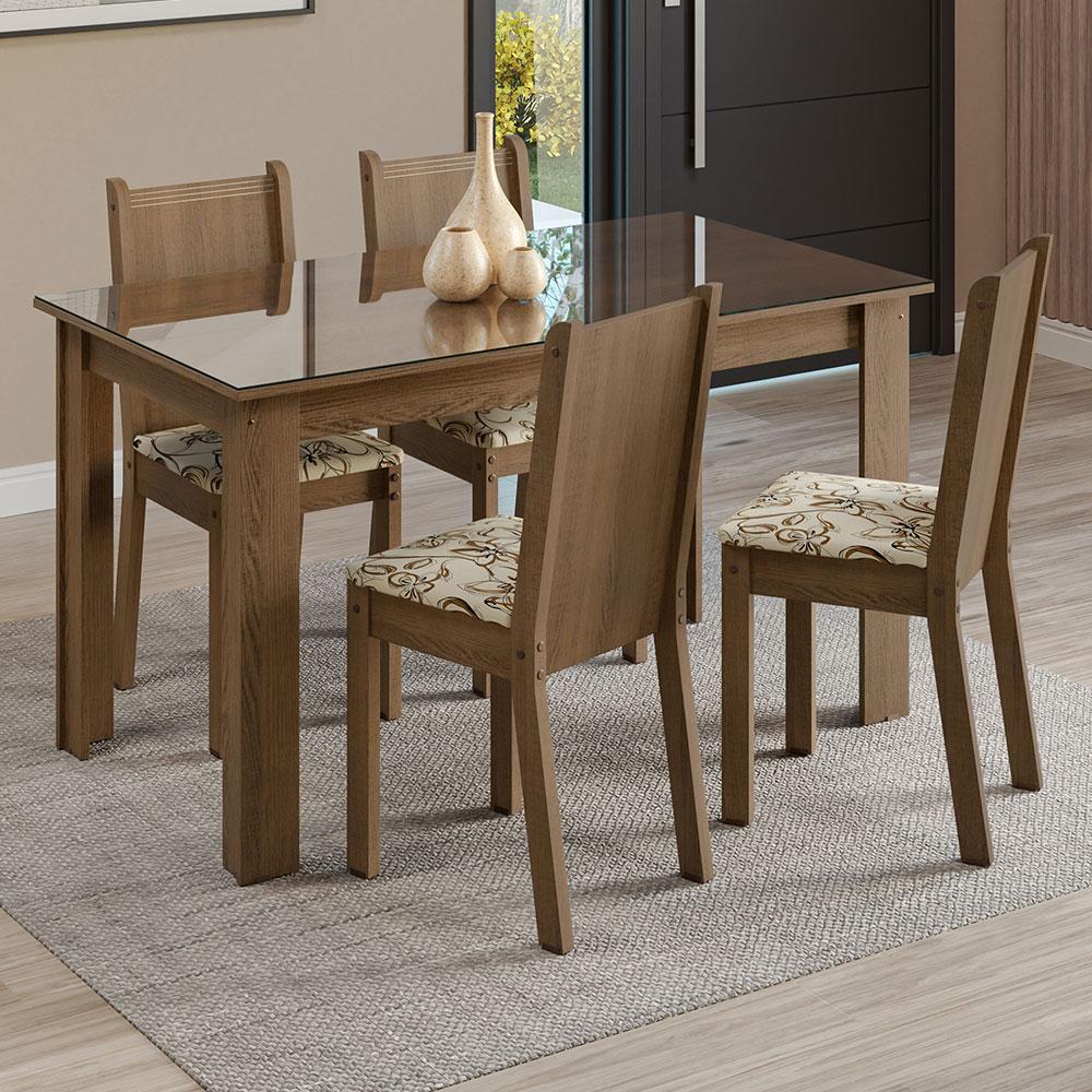 Conjunto Sala de Jantar Mesa Tampo de Vidro 4 Cadeiras Rustic/Lírio Bege Kiara Madesa