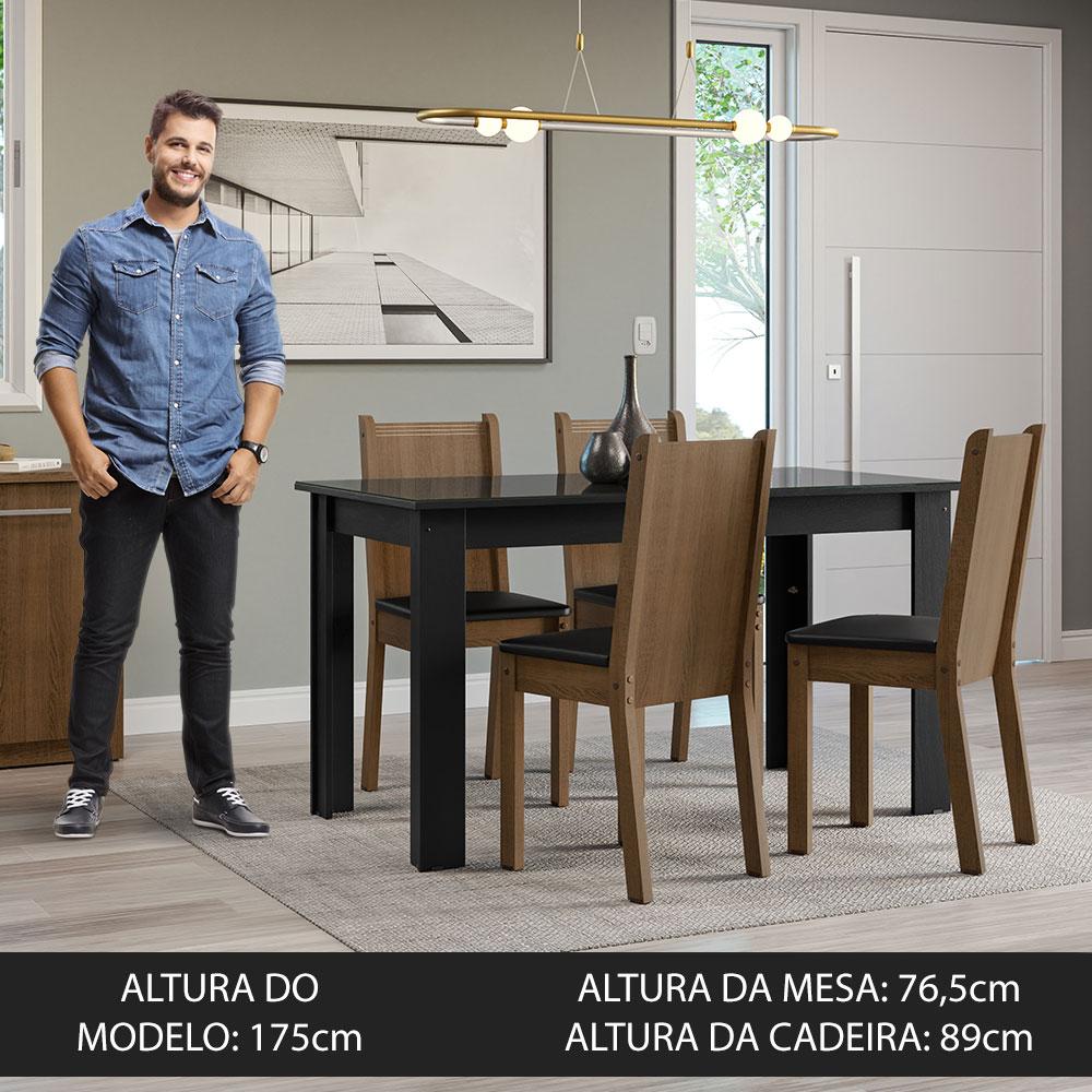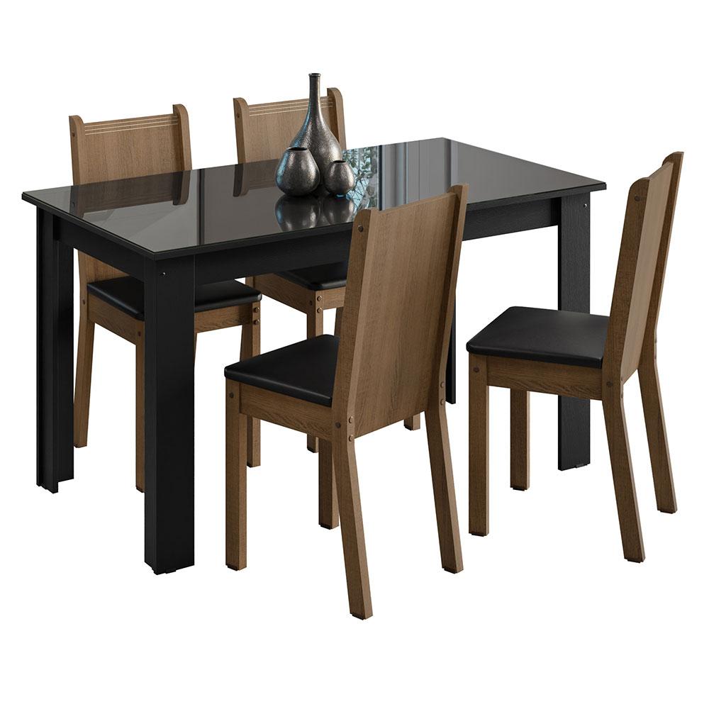 Conjunto Sala de Jantar Mesa Tampo de Vidro 4 Cadeiras Preto/Rustic Kiara Madesa