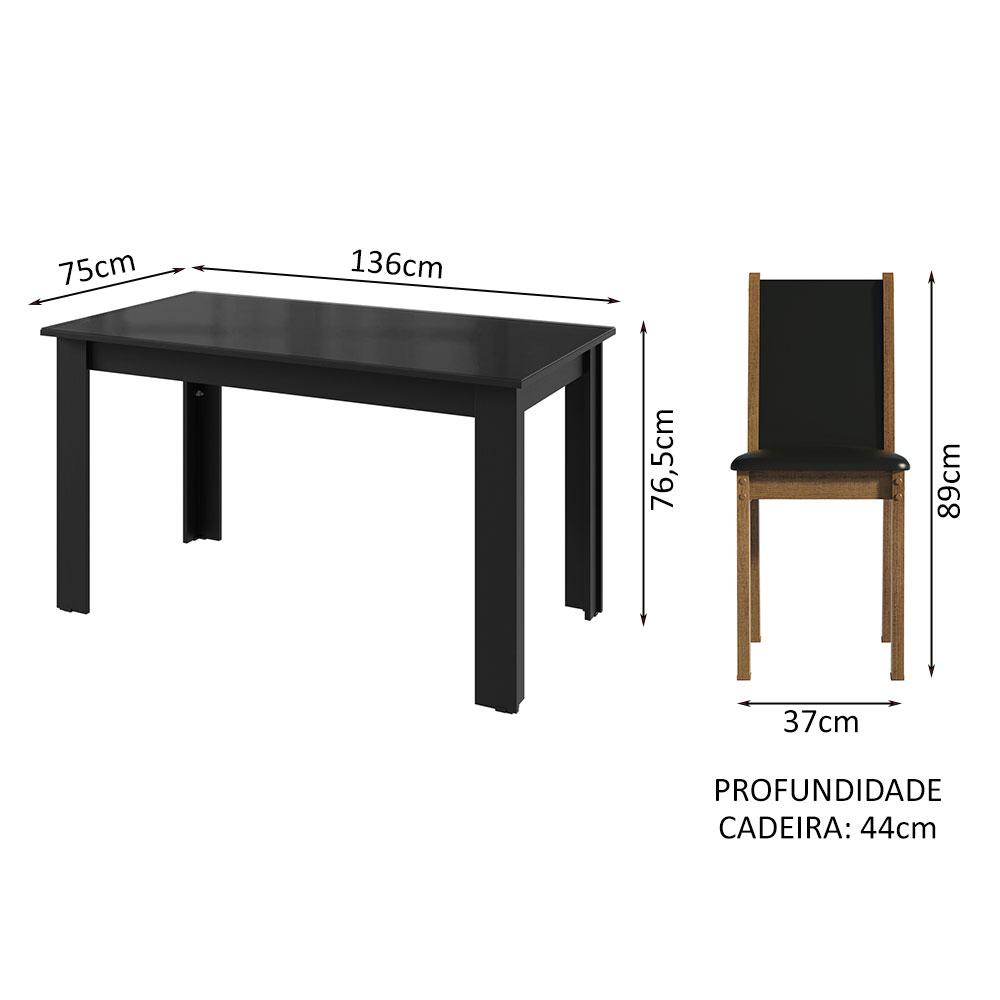O Conjunto Sala de Jantar Suzy Madesa possui design clássico e vai deixar sua cozinha ou sala de jantar muito mais bonitas.A mesa é retangular, com pés estruturais e acomoda perfeitamente até quatro pessoas. O vidro incolor sobreposto ao tampo de madeira deixa o ambiente ainda mais elegante.As cadeiras são confortáveis, com estrutura em MDF e MDP, encosto na coloração preta e assento estofado. O tecido Sintético Preto possui um toque suave e se adapta bem a qualquer tipo de decoração.O acabamento combina os tons amadeirado Rustic e preto. Feito em Pintura Poliéster ecológica de alta resistência, que consiste na aplicação de sete camadas de proteção resistentes a álcool, água e calor.Medidas da mesa:- 76,5 cm de altura- 136 cm de largura- 75 de profundidadeMedidas das cadeiras:- 98 cm de altura- 40 cm de largura- 49 cm de profundidadeItens inclusos:- Uma (1) Mesa retangular com tampo em madeira e vidro temperado sobreposto- Quatro (4) Cadeiras com encosto na coloração Preta e assento em tecido Sintético PretoCódigo do produto: MDJA040189D8PTObs.:- A Madesa não disponibiliza serviço de montagem- Imagens meramente ilustrativas. O conjunto é composto pela mesa e quatro cadeiras.- O produto segue com manual e todas as ferragens necessárias para a instalaçãoA Madesa se dedica à sustentabilidade com várias iniciativas: temos uma usina própria para gerar energia que abastece uma de nossas fábricas. Selecionamos nossos fornecedores, priorizando aqueles que possuem um compromisso com a sustentabilidade e proteção do meio ambiente. Todo o plástico utilizado no setor produtivo é proveniente de reciclagem e as suas sobras são encaminhadas ao fornecedor que os recicla. Também investimos no desenvolvimento contínuo de nossos colaboradores e em ações educacionais que beneficiem a comunidade.