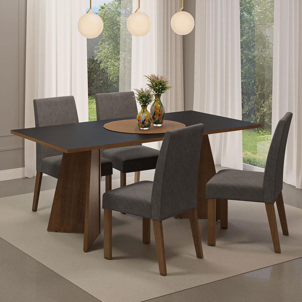 Conjunto Sala de Jantar Mesa Tampo de Madeira 4 Cadeiras Rustic/Preto/Silver April Madesa