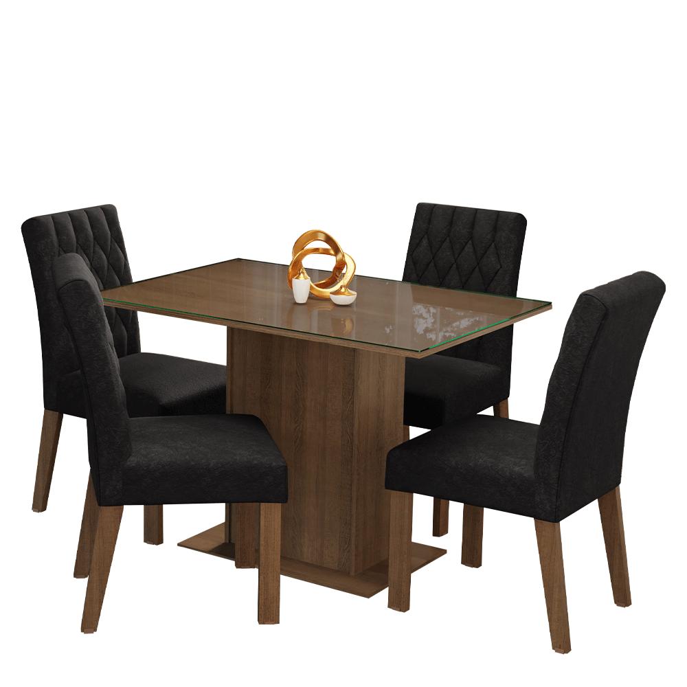 Conjunto Sala de Jantar Mesa Tampo de Vidro 4 Cadeiras Rustic/Oxford Reale Madesa