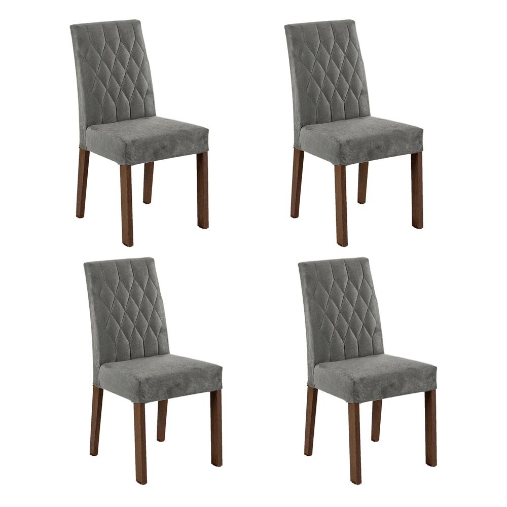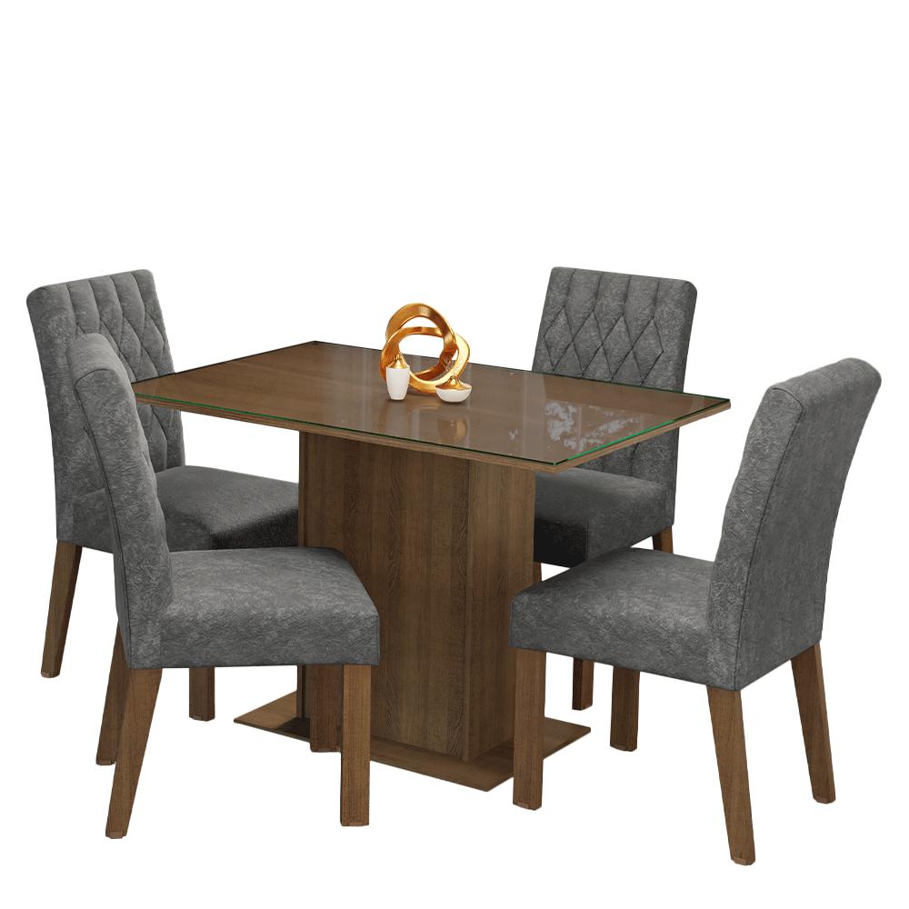 Conjunto Sala de Jantar Mesa Tampo de Vidro 4 Cadeiras Rustic/Silver Reale Madesa