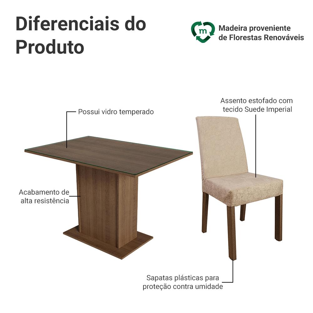 Conjunto Sala de Jantar Mesa Tampo de Vidro 4 Cadeiras Rustic/Imperial Zion Madesa