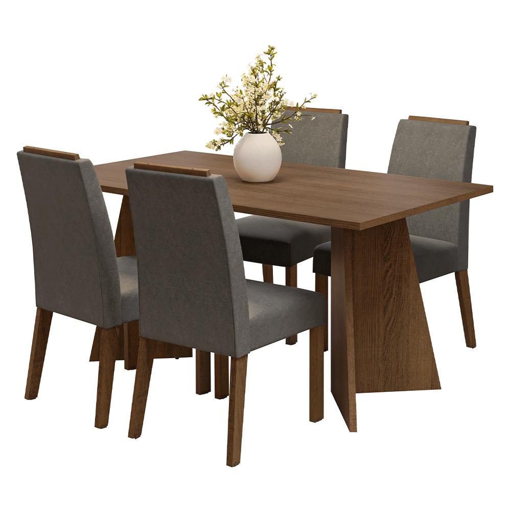 Conjunto Sala de Jantar Tampo de Madeira 4 Cadeiras Rustic/Silver Évora Madesa
